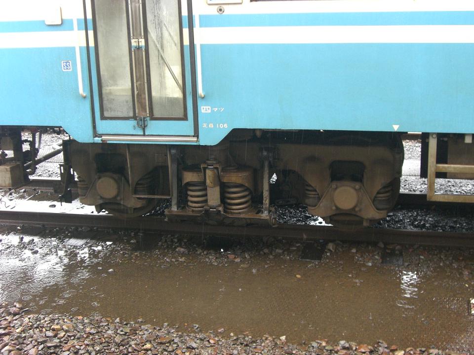 ・キハ32 走行音 【予讃線】伊予市〜鳥ノ木(2分31秒:824KB) 動き出してしまえばごく普通のディーゼルカーの音です。車体も短く、重量も軽いので軽やかに走るイメージでした。 |