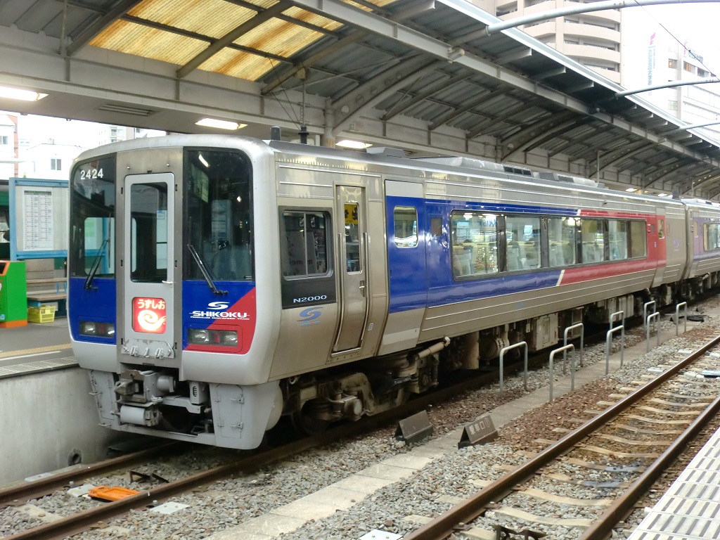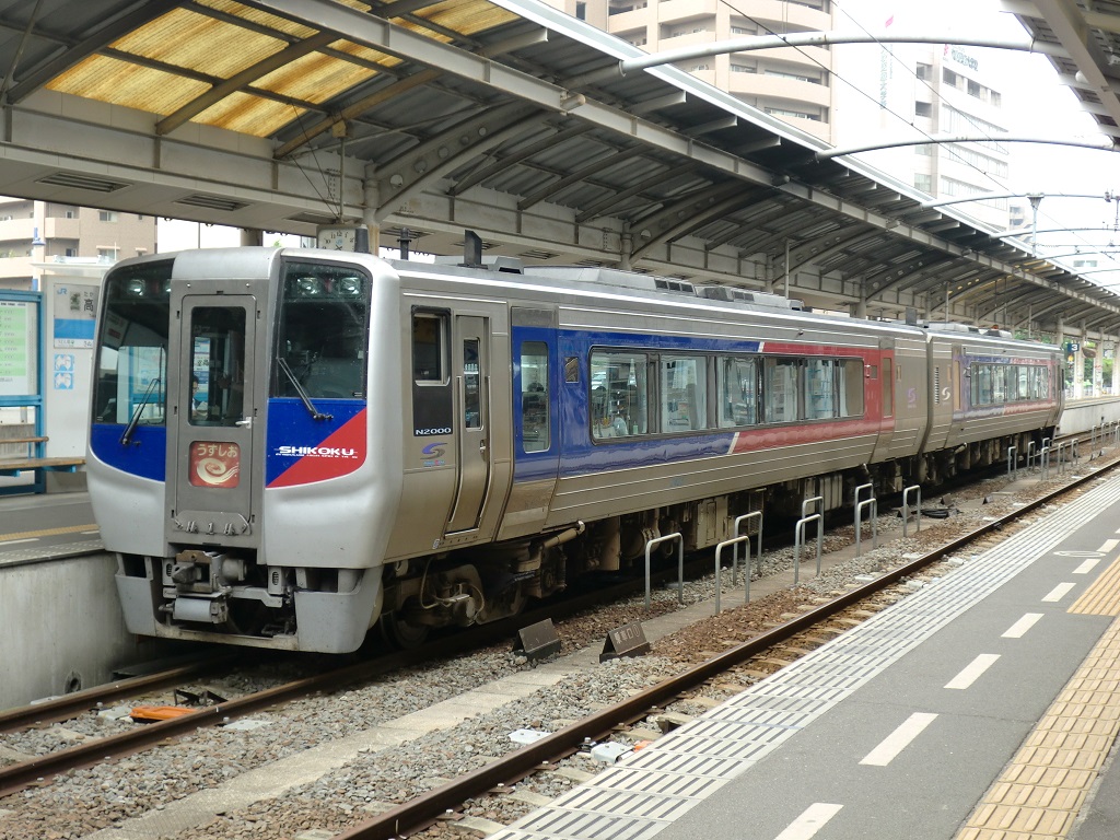 こちらが先行車。2000系と形は全く同じなのですが塗装がN2000系タイプのものに変更されています。登場当初はこの色とはまた別の色に塗られていたのですが、そちらも2000系とは別の色でした。 撮影地:高松 |