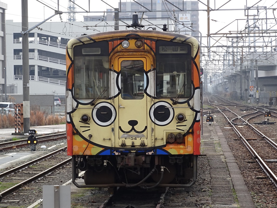 ・キハ54形「おさんぽなんよ号」走行音 【予讃線】卯之町→上宇和(2分53秒:941KB) 特にこの車両だからこその放送が為されるわけでは無く、他のキハ54と走行音は同じです。 |