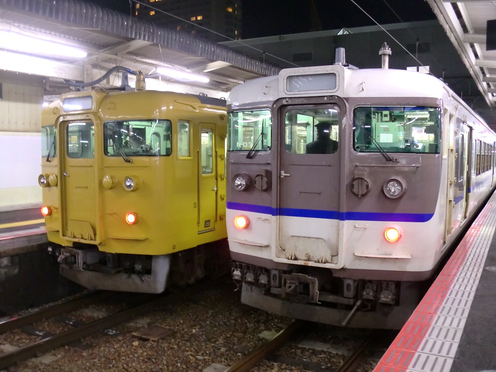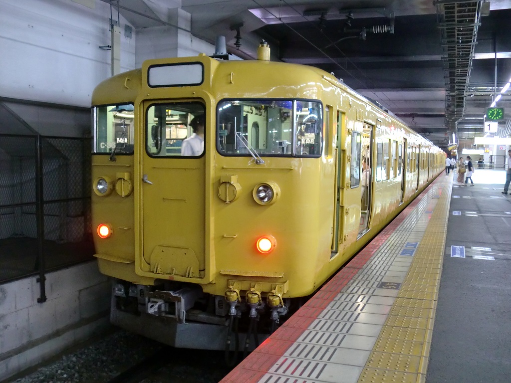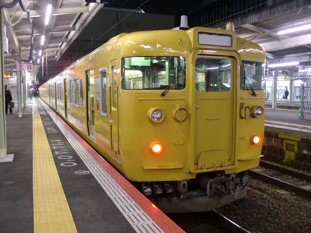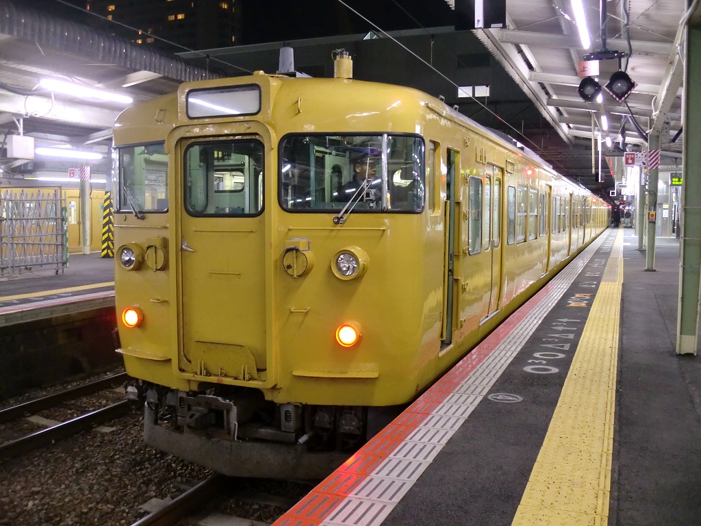 | ・115系C-41編成広島発車(youtube) 広島地区で活躍する115系のうち、下関に所属するC-41編成は瀬戸内色が最後まで残っている編成で、両側の先頭車が初期車となっています。この編成、貴重なのは勿論ですが、かなり状態が悪い事でもちょっと有名で、車両の随所から満身創痍な様子が見て取れるちょっと気の毒な存在でもあります。227系が入ったら真っ先に置き換えになると思われるので、記録はお早めに。 2014年に岡山で、2015年に広島で2度見ることが出来たことから、個人的には好きな編成でもあります。鉄コレにでもなってくれないかなぁ、なんて。勿論ボロボロっぷりまで再現しろとは言いませんけど。 |