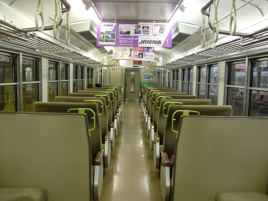 | 車内A 壁:薄緑 モケット:茶色 |
