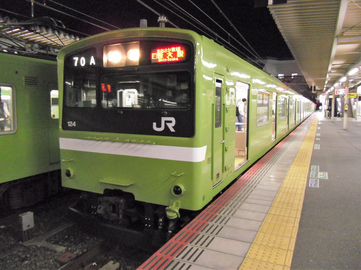 | ・201系30Nドア開閉(youtube) JR西日本では201系も103系同様更新工事が施行されることとなりましたが、103系と比べて経年が浅かったため40Nではなく30Nが行われています。 扉に関しては、中央のゴムが灰色から黒に変わった、という程度の違いしかありません。動きも同じ、ドアチャイムも無し。 |