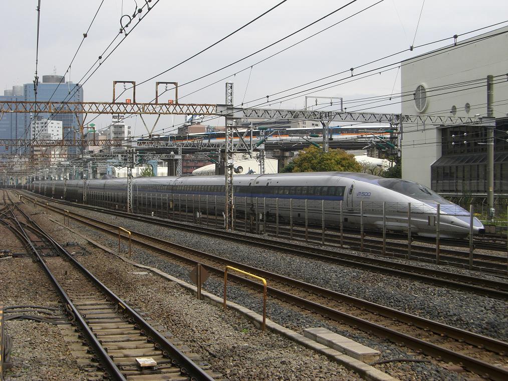 東海道山陽新幹線の速達化を目的としてJR西日本が製造された新幹線。それまでの新幹線とは完全に印象を異にするその見た目も勿論ながら、日本の新幹線に置いて初の300km/hを達成して世界最高速タイとなったことが注目され、瞬く間に有名な車両となりました。ただ、速度向上のためのまるいフォルムが災いして座席数が従来の車両と比べて少なくなってしまいました。それが理由となり、製造は700系にすぐ移行してしまい。500系は少数派になってしまいました。 後に700系の居住性と500系の高速性能を併せ持ったN700系が導入されると「のぞみ」の運用から撤退し、現在は両数を8両に減車された上で山陽新幹線の「こだま」でのんびりと余生を送っているようです。減車された編成はW編成からV編成に変更され、7000番台となりました。また、廃車された車両のうち先頭車1両が京都鉄道博物館に保存されています。 尚、500系登場の前に運行されていた試験車「WIN350」も500系の一員であり、900番台を名乗っています。こちらも両先頭車がそれぞれ別の場所に保存されているので、機会があれば尋ねてみるのもいいかもしれません。 尚、500系を使用した企画列車「500 TYPE EVA」は別ページにて公開しています。 上写真は京都にて。 |