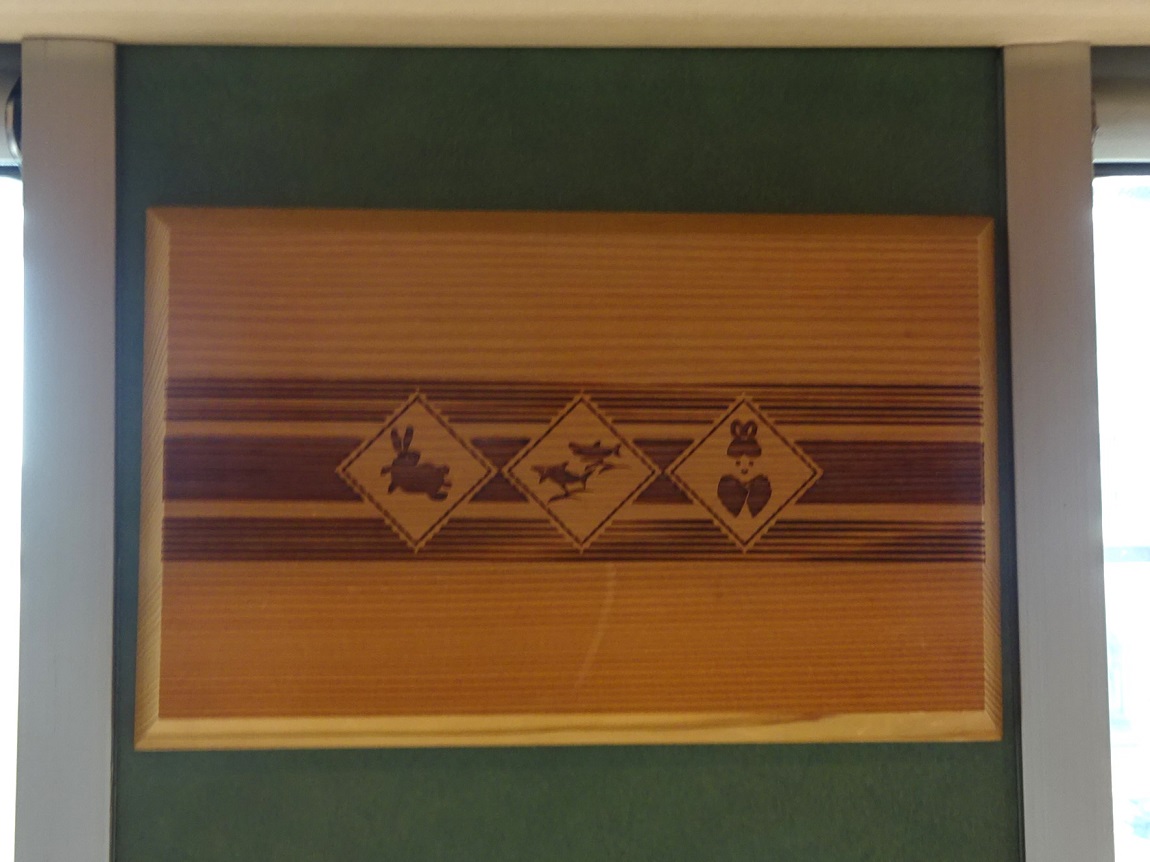 | キロ47-7006(鳥取) 2号車で物販カウンターあり。車両後部には神楽衣装のミニチュアが展示されています。 |