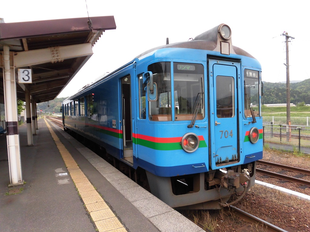 1989年、宮津線のKTRへの転換が決まった際に製造された車両で、富士重工製造の軽快気動車「LE-DC」の流れをくむ車両…ではありますが、車体長が20mと大きい上になかなかデザインも凝っているのであまりそれっぽさは感じられません。トイレが設置されている車両がKTR700形、無い車両はKTR800形となります。それ以外の違いはありません。車内は0系新幹線とほぼ同じ座席が並んでおり、宮福線のMF100・200形同様、普通列車用としてはグレードの高いものとなっています。 2013年より3両が観光列車(あかまつ、あおまつ、くろまつ)に更新されたほか、それら3両と同じく水戸岡鋭治のプロデュースにより普通列車用の更新を施された車両が存在し「コミューター列車」の愛称があります。勿論ほかの車両と全く共通運用なので、乗車できるかは運次第といったところ。すべての車両がこのように更新されるのかは不明。 上写真は西舞鶴にて。 |