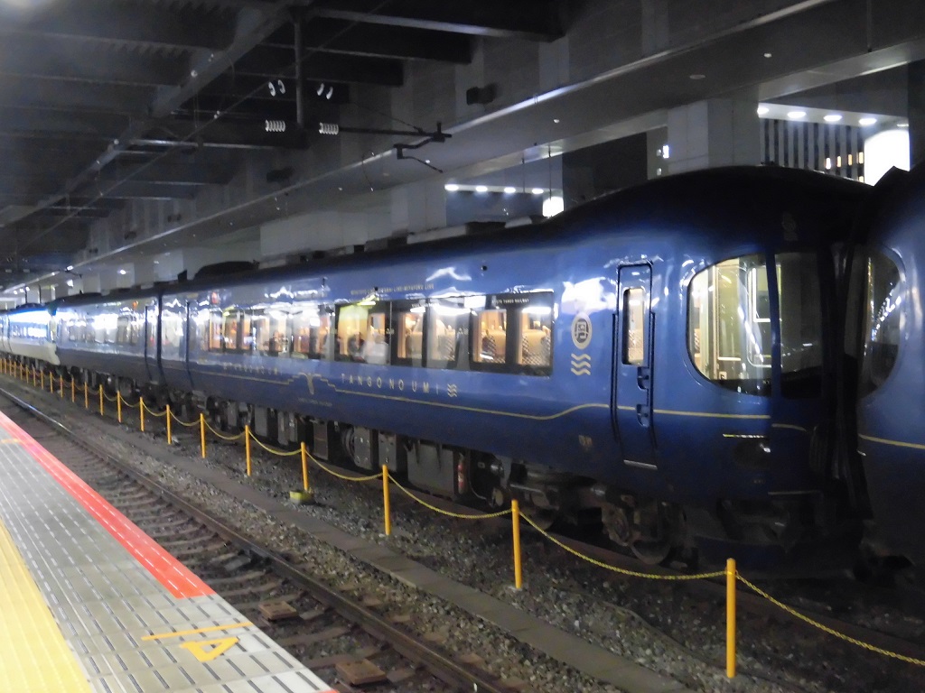 先述の通り、2017年5月限りでKTR8000形はすべて「丹後の海」に改造され、その記念の看板が西舞鶴駅のホームに掲示されていました。なかなか凝ってますね。 |