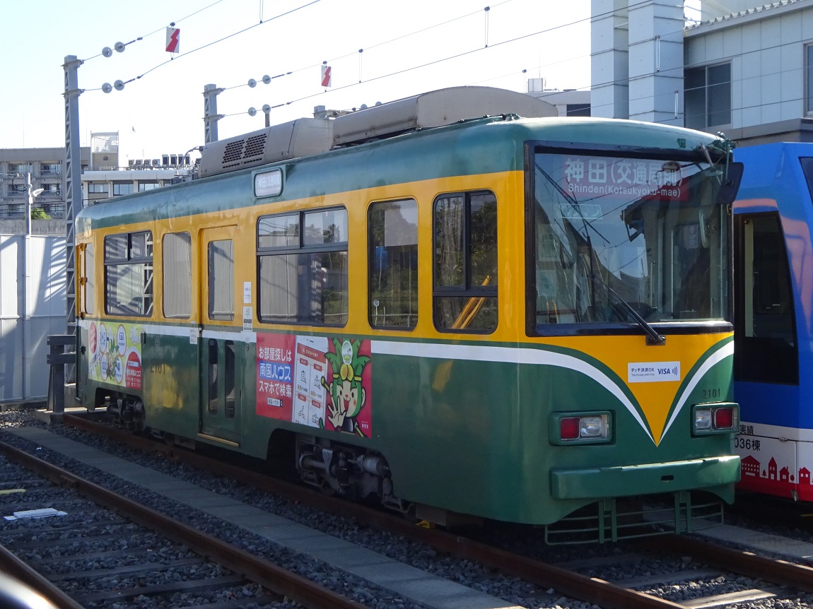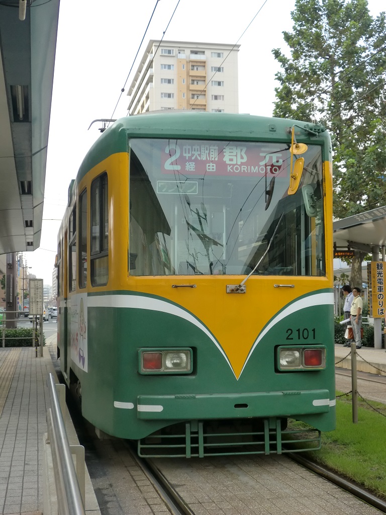1989年、鹿児島市電の開業60周年、および鹿児島市の市制施行100周年を記念して導入された車両で、2両が在籍しています。大きな引き戸を出入口共に用いているなど、他の車両にはない特徴を持っています。ちなみに、「2100」の由来は「21」世紀を先取りする電車、という意味になります。