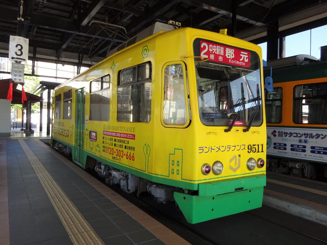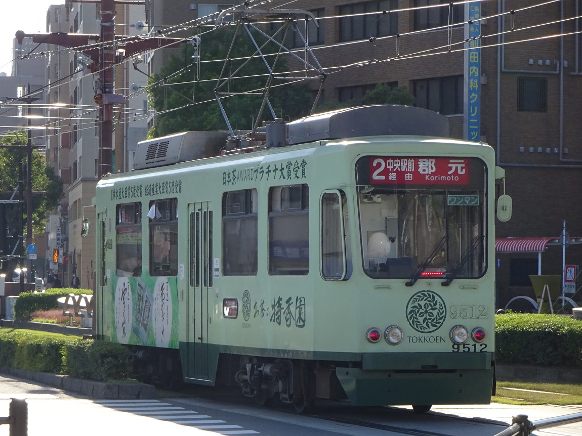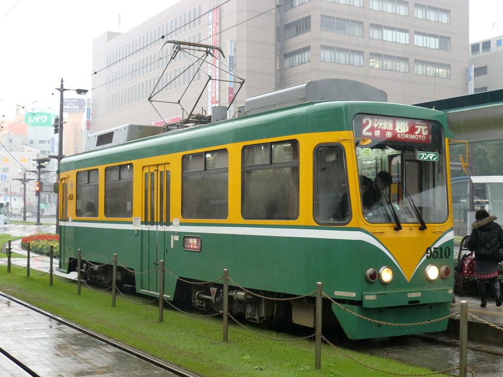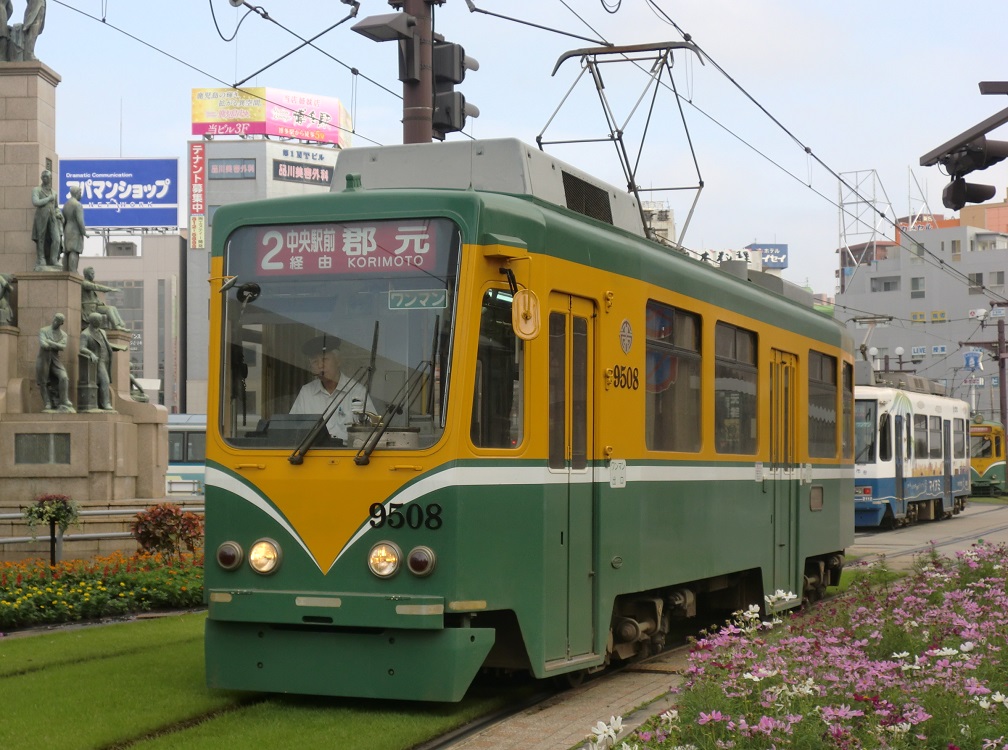 ・9510 鹿児島中央駅発車(youtube) 1995年に登場した9500形は、旧型車両からの機器流用車で、路面電車によくある車体だけ新しい吊り掛け車両となります。塗装は鹿児島市電標準の色。かつては違う色に塗られていたようですね。 |