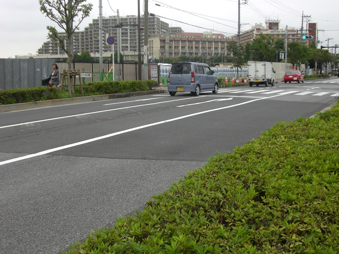 このアスファルト舗装部分だけ、不自然に縁石が新しいのです。2006年時点の話なので現在はこれは痕跡として役に立たなくなってしまっているかも。 |