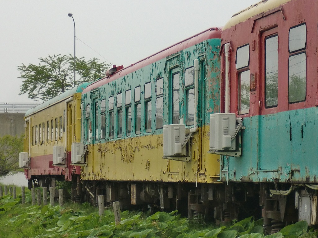路線の廃止後はキハ22の残った1両と同様に、弘南線田舎館駅付近の道の駅「いなかだて弥生の里」に移り、どこかで見たことのあるキャラクターのようなものが描かれた板を張り付けられ、カラフルに塗り分けられた状態で保存されています。当初は休憩所として利用していたようですが、現在は立ち入ることができません。