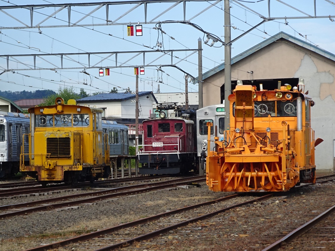 1926年に信濃鉄道(現在の大糸線)向けに海外から輸入された機関車で、1937年に国鉄の車両となりました。3両が在籍していたうち、写真のED22-1は、1948年に西武鉄道へ譲渡、その後1950年に近江鉄道へ移り、1960年に一畑電鉄へ行ったうえで1974年に弘南鉄道にやってきた、という波乱万丈な経歴の持ち主。現在は大鰐線の除雪用として残っており、なんとまだ現役だったりします。とんでもない事ですね。