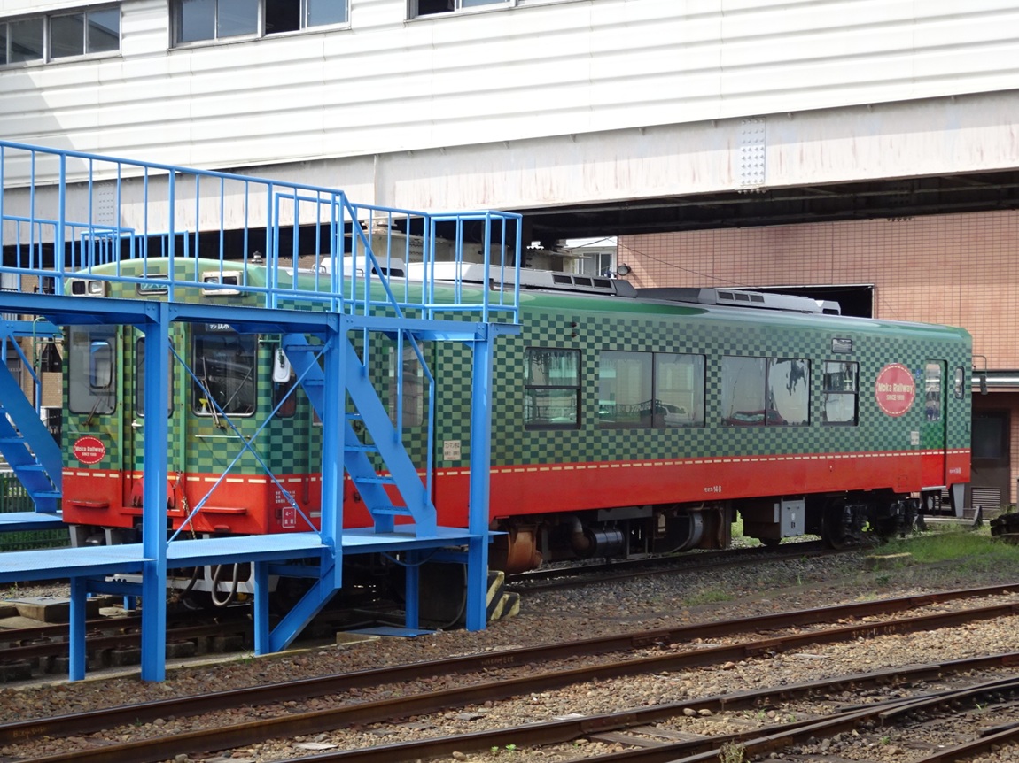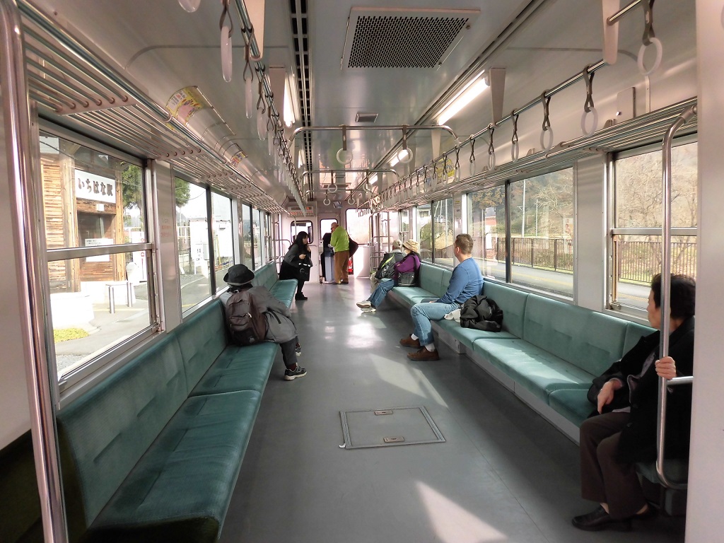 | こちらが富士重工製の車両。初めに登場した2両のみが該当します。車内はセミクロスシートになっていますが、後に大量に増備された日本車輛製の車両はロングシートなので、そこも大きな違いです。 撮影場所:市塙 |
