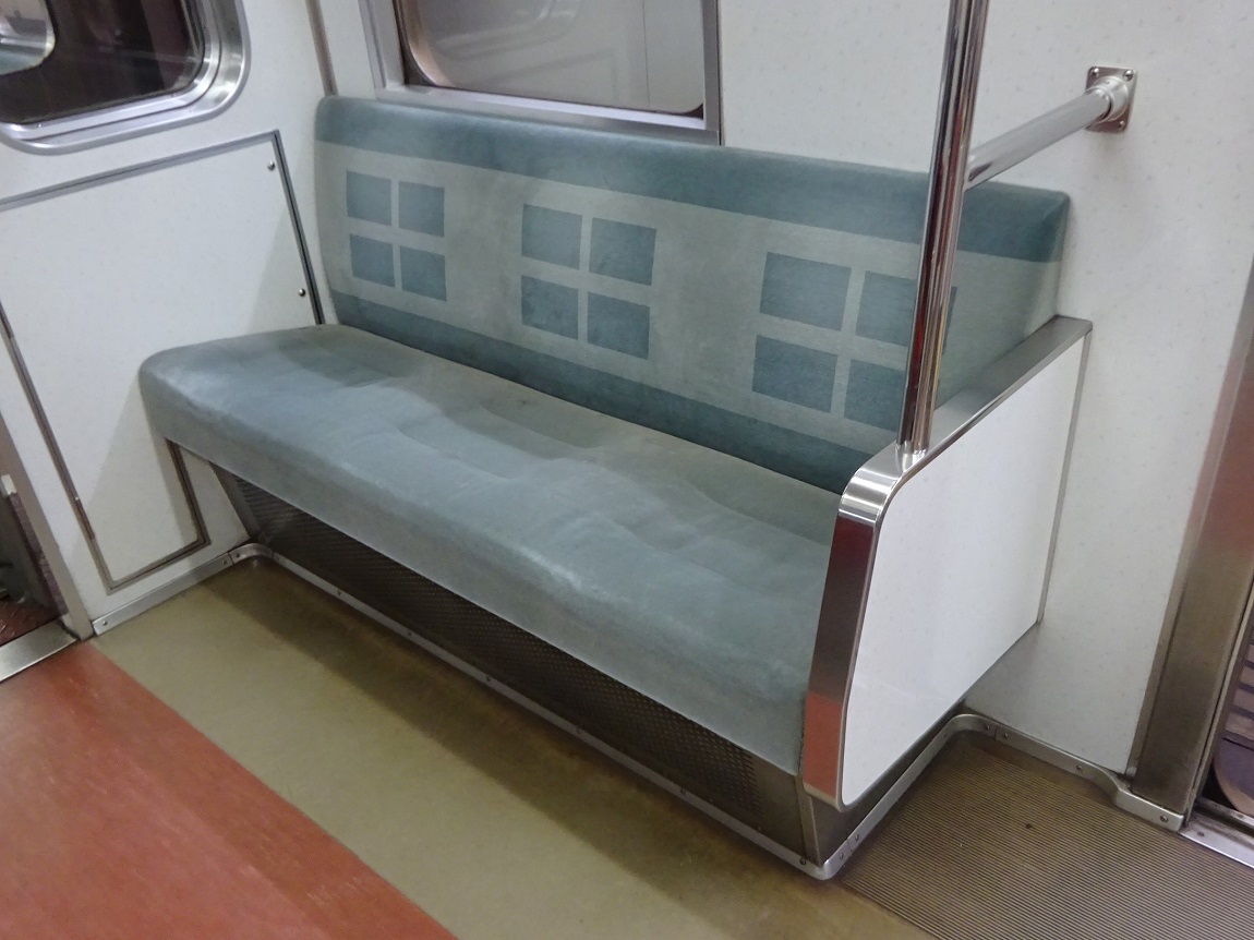 | 5050形ドア開閉 (ドアチャイム無し)(youtube) 東山線の主力、5050形。やたらと転調の多いVVVF音が特徴です。扉に関しては名古屋市営ではごくありふれたもので、中央のゴムも灰色のままで交換される気配はありません。恐らく交換されてもまた灰色なのでしょう。 |