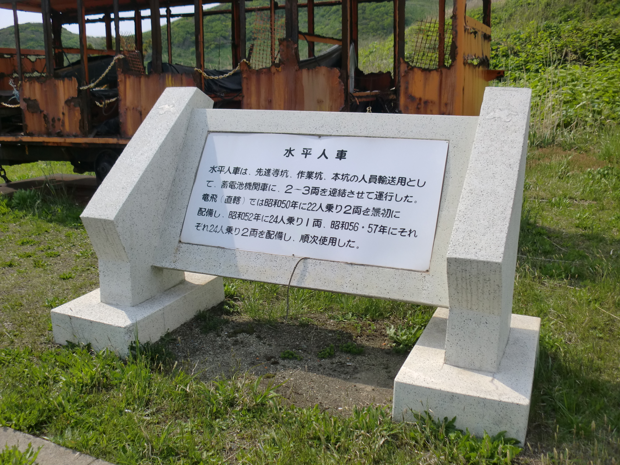 体験坑道と屋外に少し形の違う車両が1両ずつ保存されていますが、体験坑道にいる車両を見た後だと屋外の車両は殆ど同じ車両だったとは思えない荒廃っぷりで、屋外展示の大変さを感じさせます。