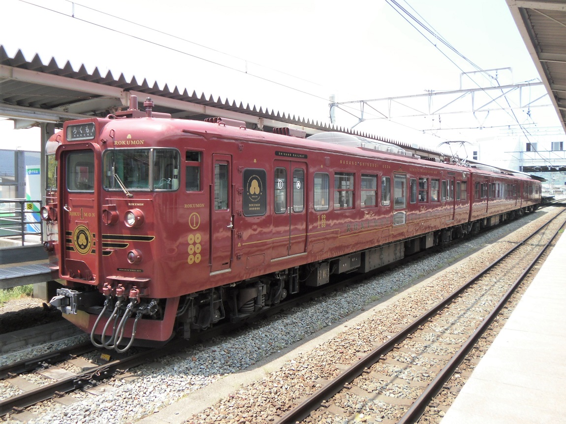 北陸新幹線の延伸開業に伴い、しなの鉄道が信越本線の長野〜妙高高原間の運行も受け持つことになった事から経営基盤の強化が課題となっていました。その為、しなの鉄道の利用促進と沿線地域の活性化を図るために2014年から導入された観光列車が「ろくもん」で、種車は115系のS8編成となりました。