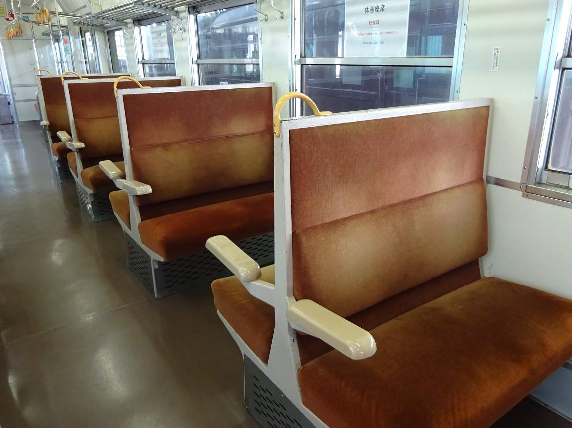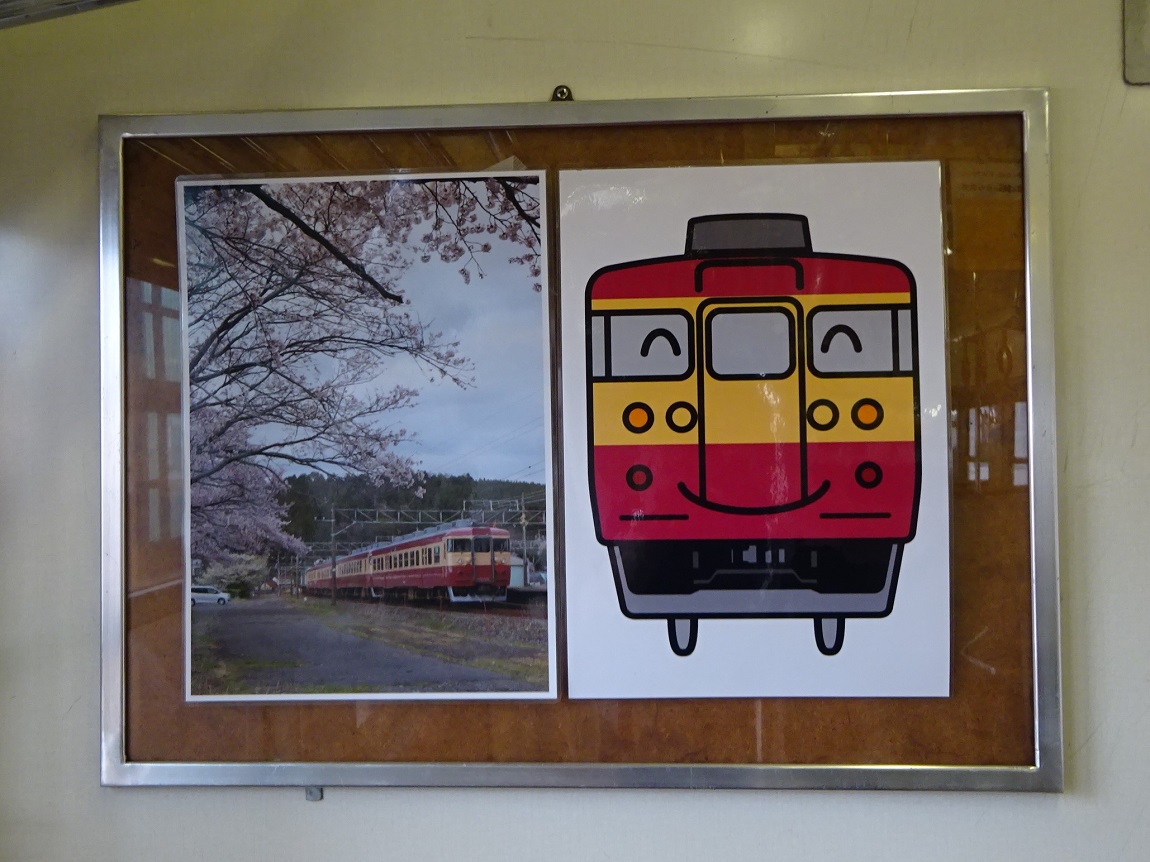 クハ455には前面の行き先表示が設けられているように見えます。同車は凍り付きの対策も兼ねて前面の行き先表示をJR時代に封鎖していました。これは、実はそれを復活させたように見せかけたシールでのラッピングです。汚れなども再現している事から、遠目には本当に幕があるようにしか見えません。良く出来ています。