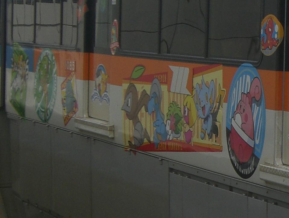 1000形1055F「ポケモントレイン2008」整備場通過(youtube) 山手線や新幹線と異なりほぼ1年中走っている東京モノレールのポケモンラッピング。気楽に撮影できる存在とはいえ、見に行こうとした時はいつも空港快速の運用でマトモに撮影出来ていません。 |
