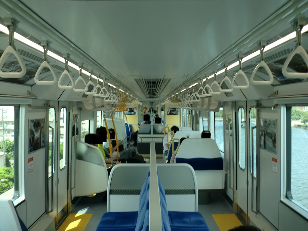 ・10000形走行音 【羽田空港線】流通センター→昭和島(2分17秒:745KB) 【羽田空港線】整備場→天空橋(1分25秒:466KB) 近年の日立製IGBTインバータを採用しており、JR東日本のE531系、東武鉄道の60000系などに類似した走行音となっています(非同期音が同じ)。モーター音自体は静かですが、やはりモノレールという特殊な路線である以上ある程度の揺れは感じます。こればっかりは仕方がないですね。 車内放送の声は今まで通りですが、ドアチャイムはJR東日本タイプの物に変更されました。 |