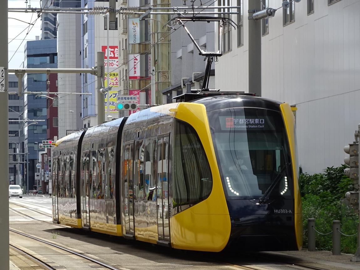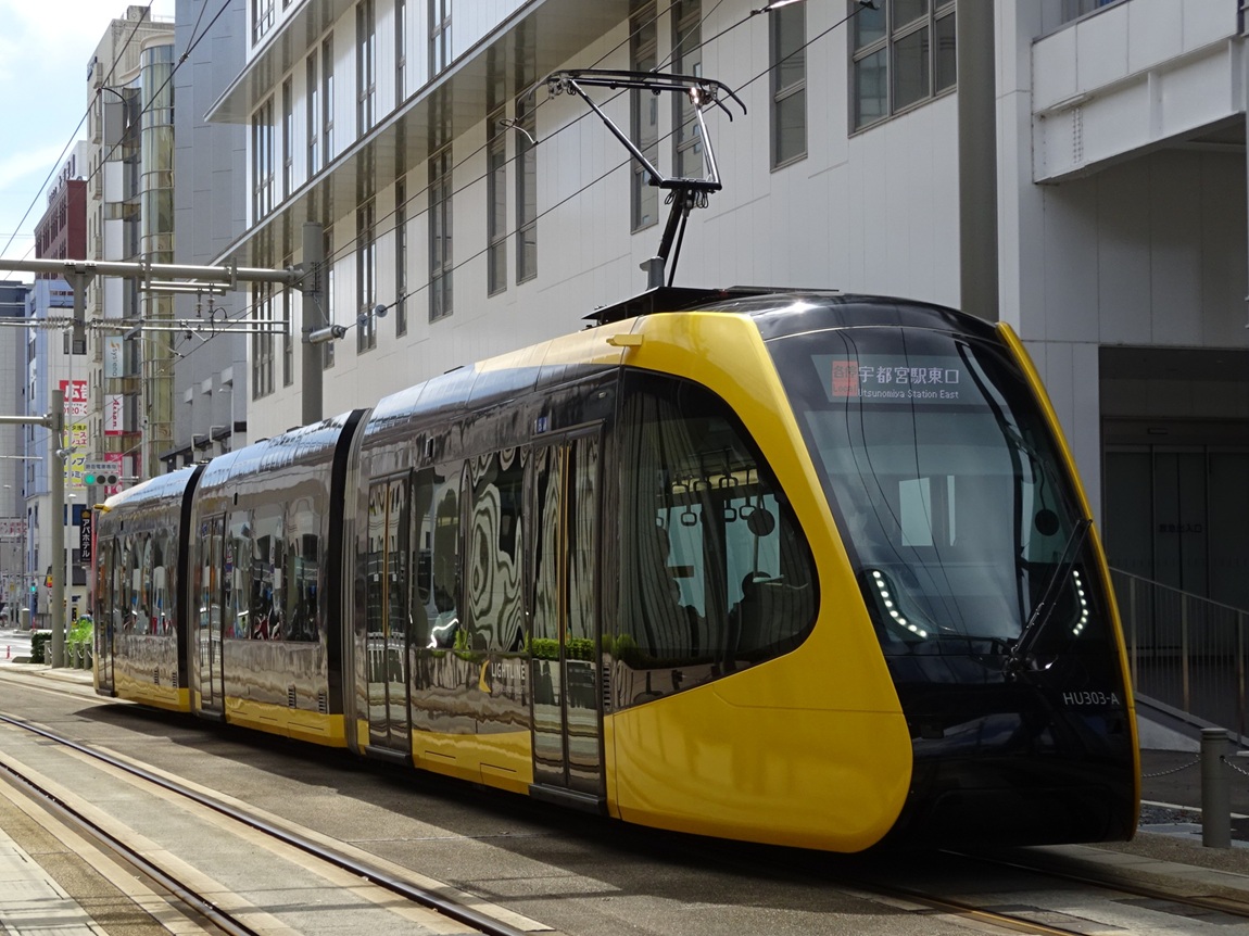 ・HU300形走行音 【ライトライン】かしの森公園前→芳賀町工業団地管理センター前 【ライトライン】駅東公園前→峰 路面電車車両にはありがちな三菱IGBTで特段目立った音ではありません。停車中に少々耳に残るブザーが流れ続けるほか、車内チャイムの種類がやたらと多く、個性はそこに見出せそうです。 |