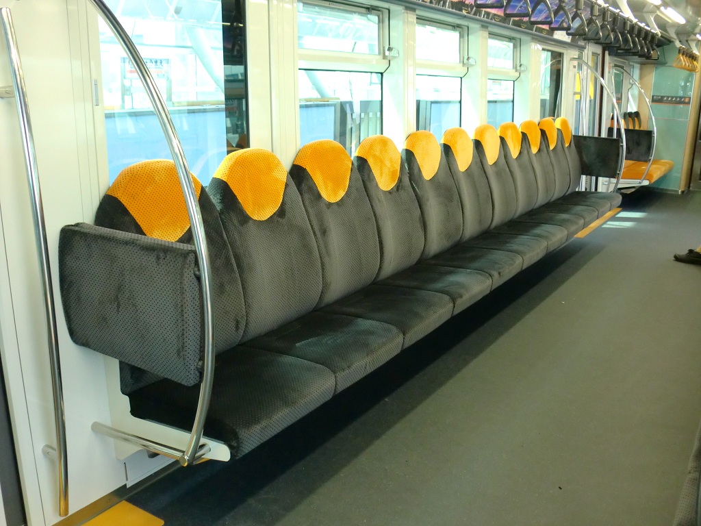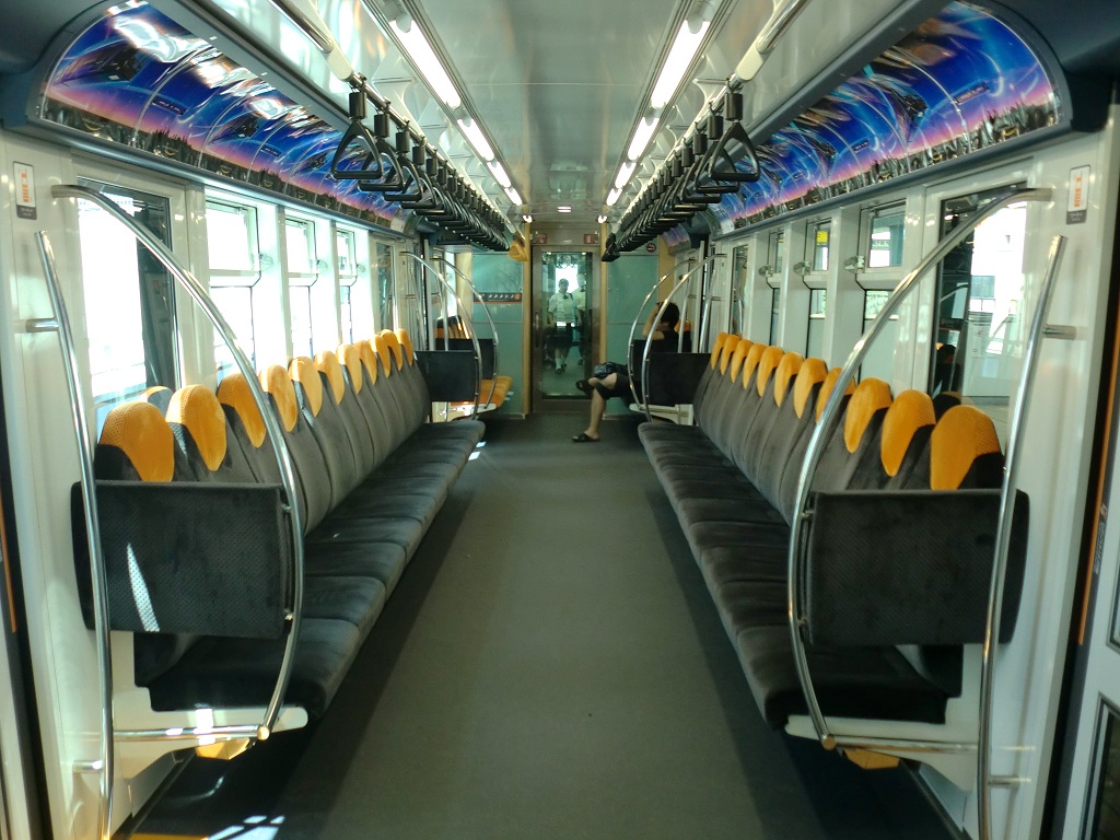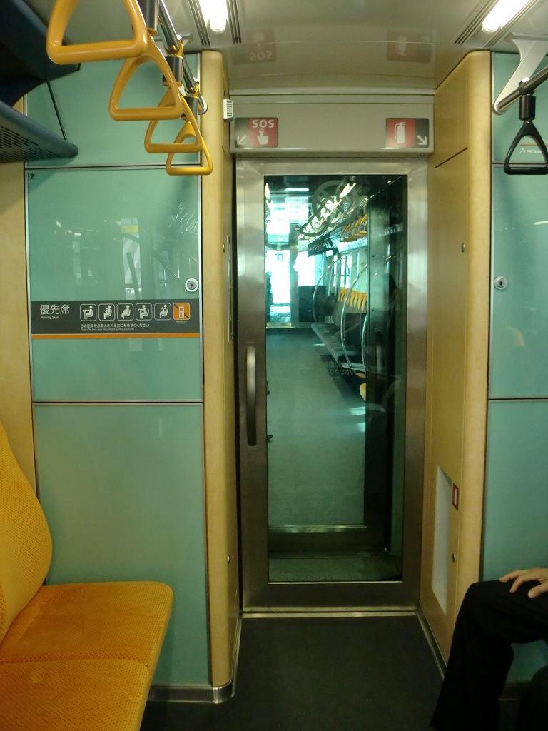 0形ドア開閉(youtube) 千葉都市モノレールの新型車両となる0形。運転室部分の床がシースルーになっていたり、側扉の窓もこのように広かったりしますが、座席の背が高いため側窓からの景色は思ったほどでもないような・・・。 ドアチャイムがあり、どことなく東武鉄道のものに類似しています。 |