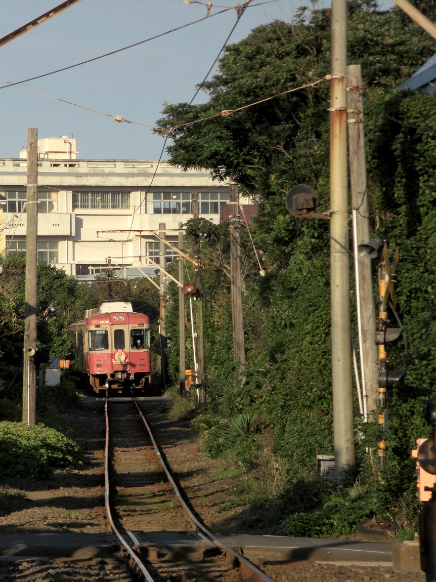 老朽化が目に見えるほどであった700形と800形の代替車を探していた銚子電鉄。ちょうどその頃引退する伊予鉄道800系はどうか?という意見を得て、はるばる四国から輸送してきて導入した車両。元々京王電鉄で活躍していた車両だったことから、京王電鉄当時の緑色に塗装した編成も存在します。そしてその編成には京王線の行先表示も入っており、ちょっと当時を懐かしむことが出来るかもしれません。2両編成のうちの片方は、伊予鉄道時代に前面を京王5000系に準じたものに改造(貫通化のため)しているため、前後で表情が異なるのも特徴の一つ。 2010年7月24日に運行が始まった2000形。ドアチャイムや冷房も設置され、その上2両固定編成と、銚子電鉄にとっては大分進化した車両となりました。 上写真は2001F。仲ノ町にて。 |