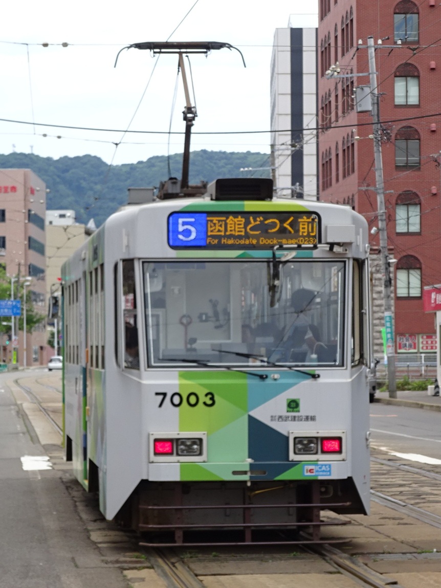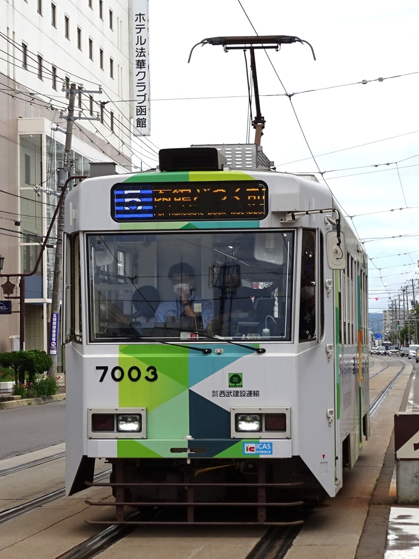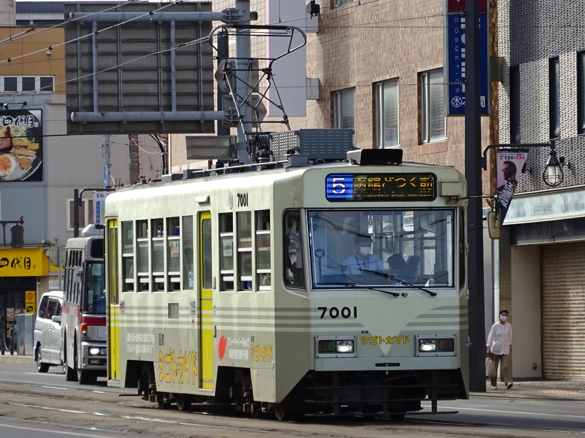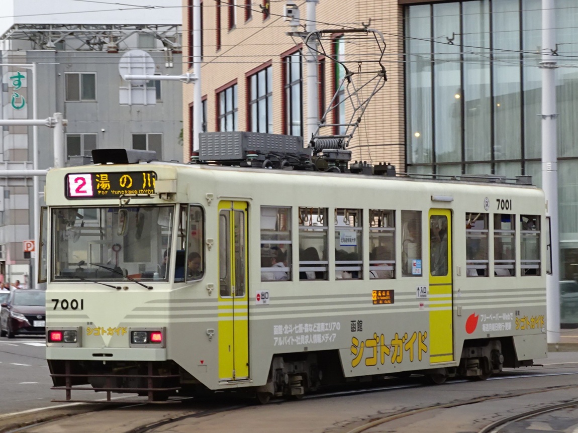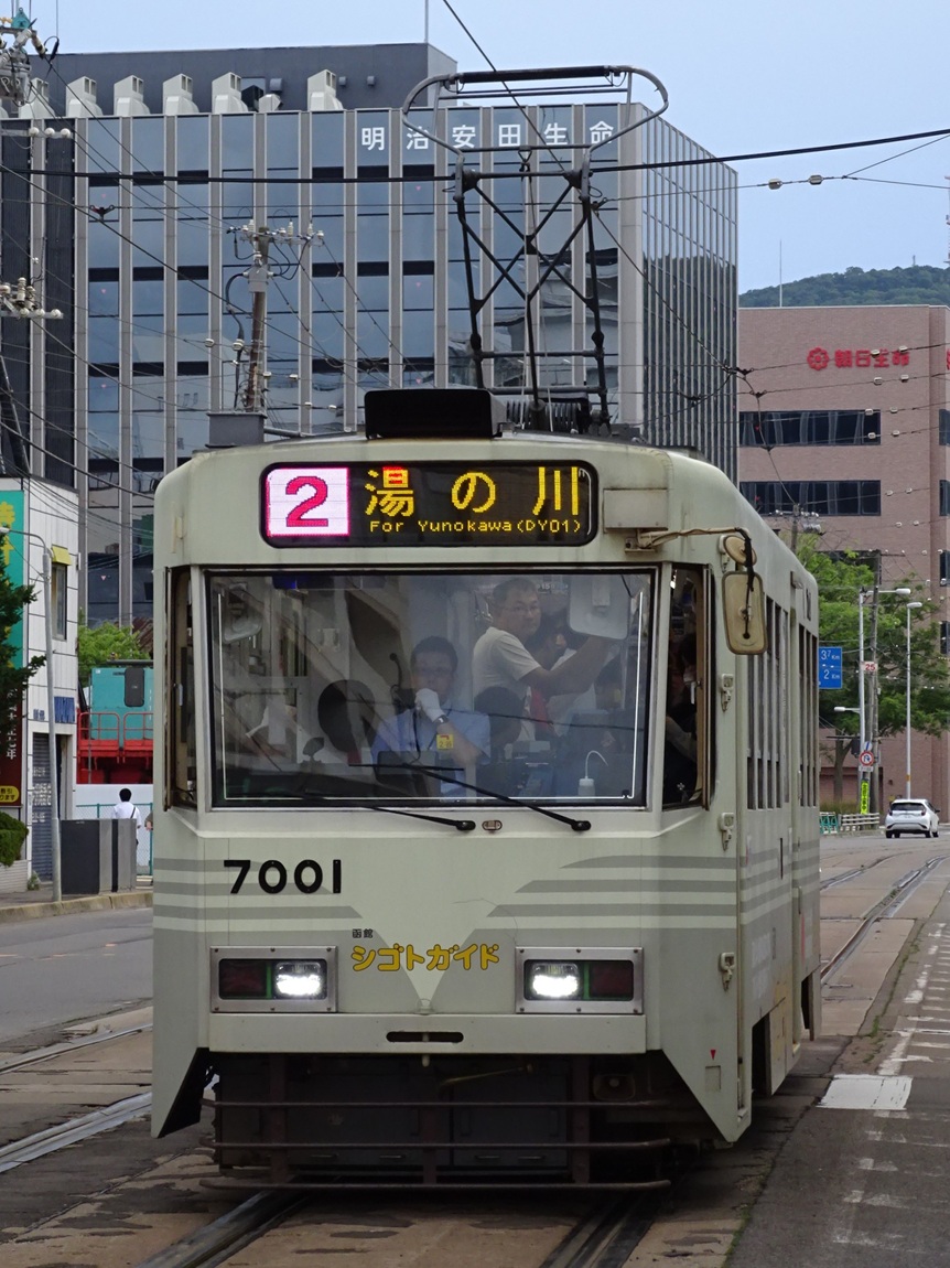 上写真は7001号車。函館駅前にて。