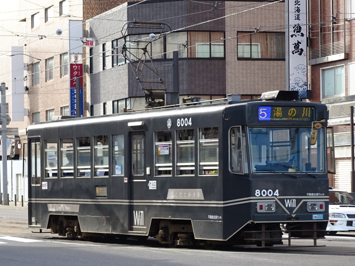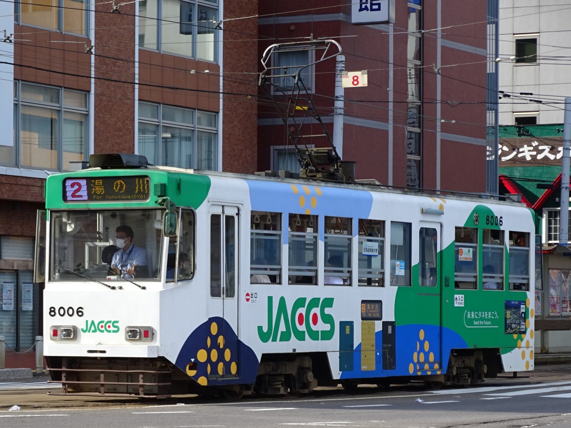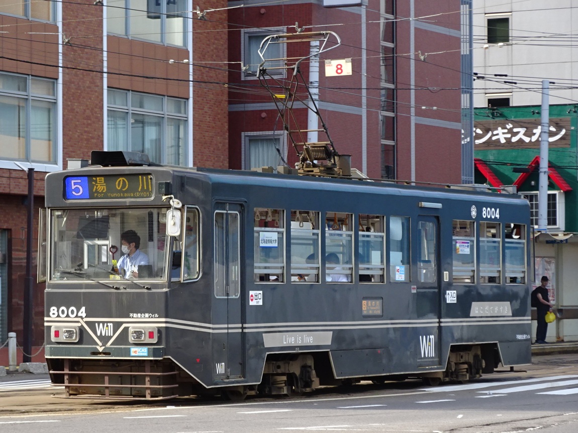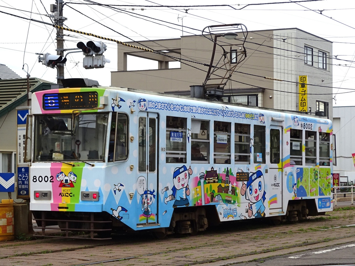 旧来の800形の車体更新によって1990年から少しずつ増備が進んだ形式で、函館市企業局の車両としては初となる砂撒き装置が取り付けられています。1997年までの間に8両が導入された所で製造がひと段落した…かと思われていたのですが、2012年になって2両が増備されました。同じ形式でここまで製造期間が開くのも珍しいのではないでしょうか。これだけ製造期間が空いた割には大きな仕様の変化はなく、簡単な違いは標識灯の形状が異なる事程度です。