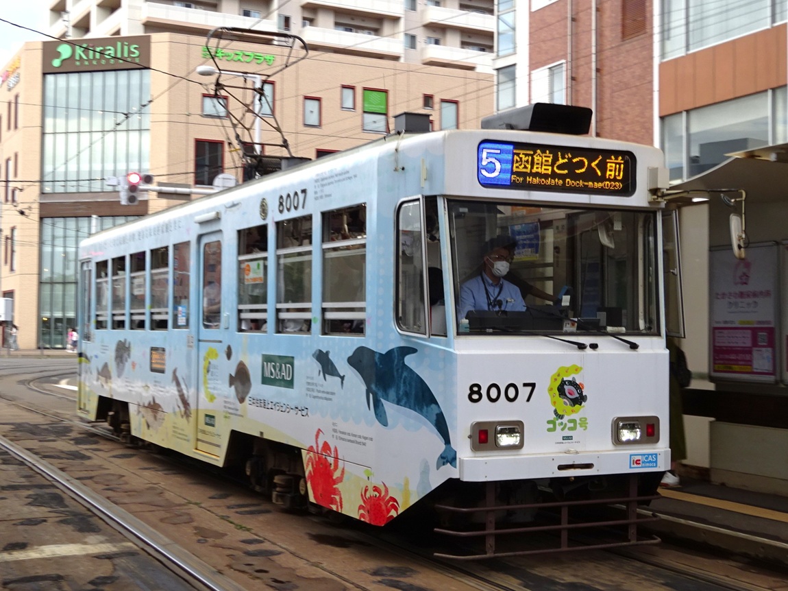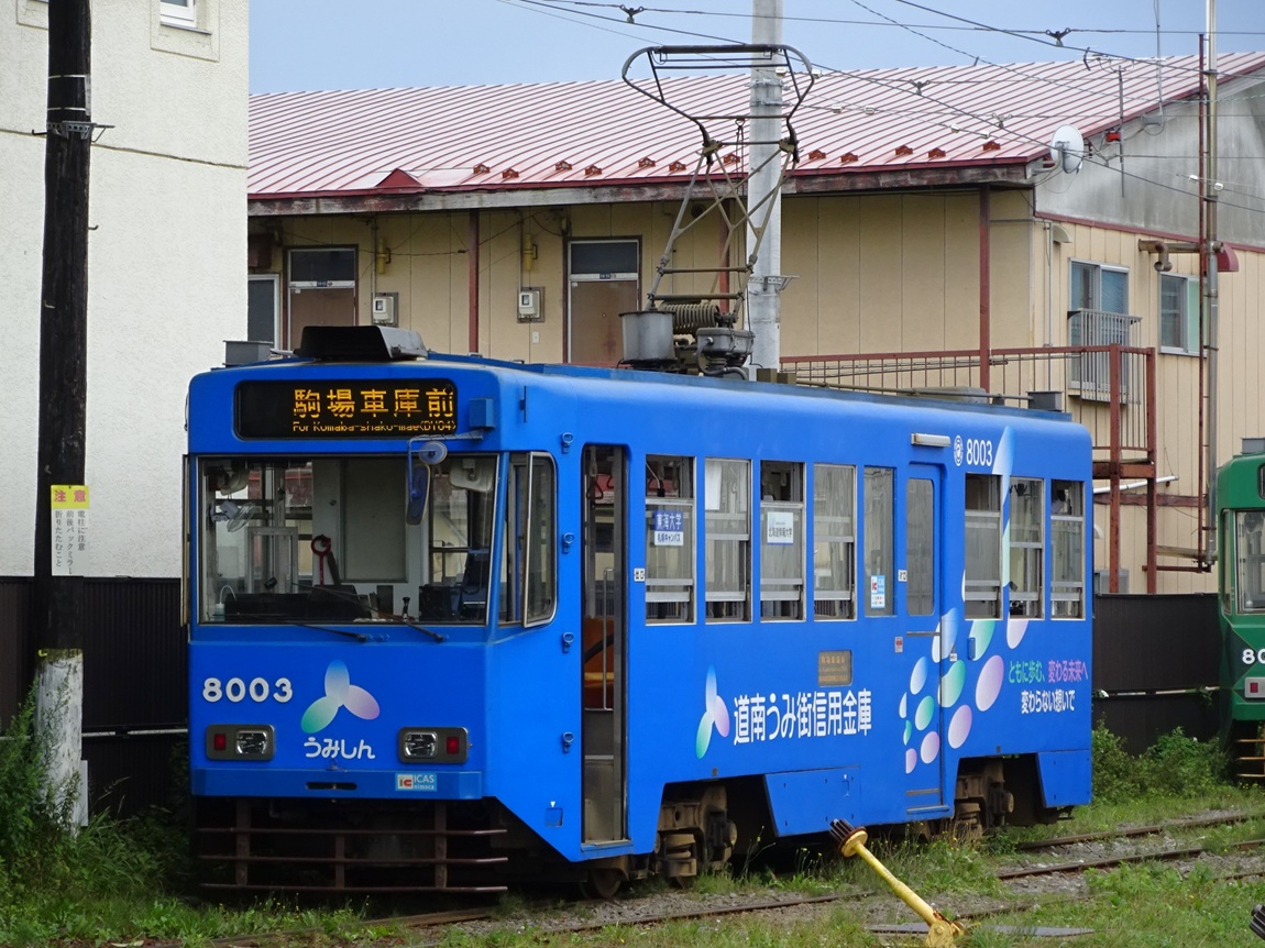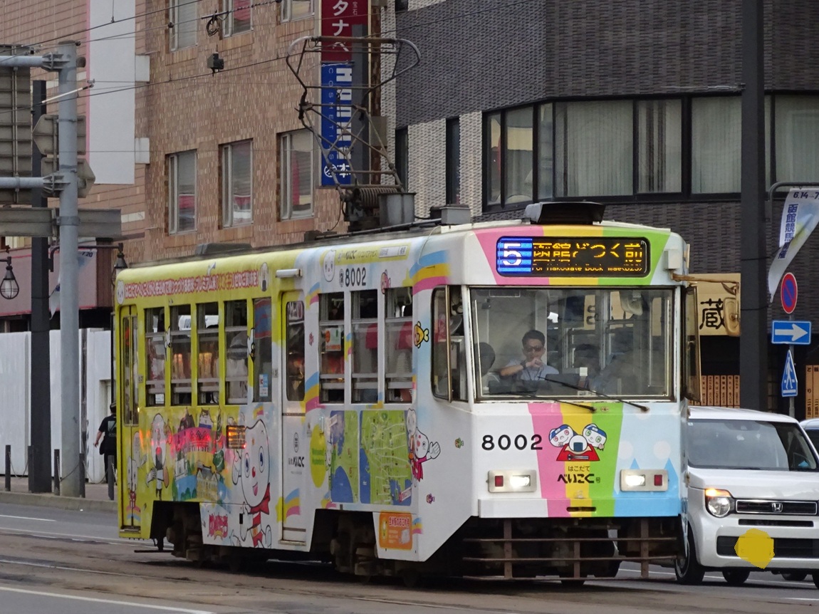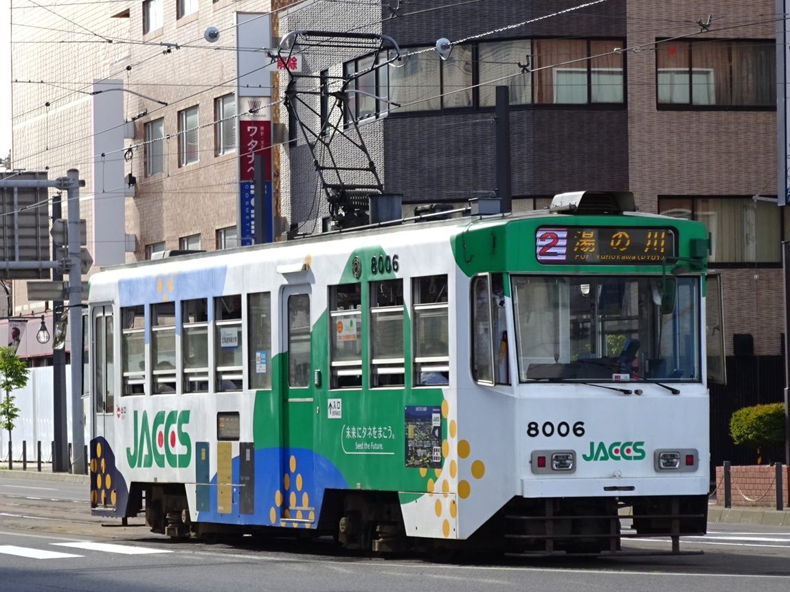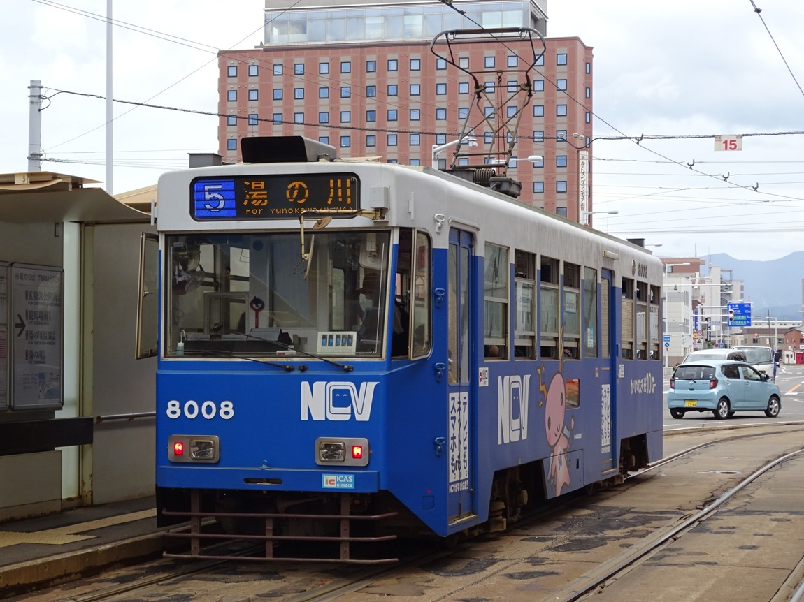 旧来の800形の車体更新によって1990年から少しずつ増備が進んだ形式で、函館市企業局の車両としては初となる砂撒き装置が取り付けられています。1997年までの間に8両が導入された所で製造がひと段落した…かと思われていたのですが、2012年になって2両が増備されました。同じ形式でここまで製造期間が開くのも珍しいのではないでしょうか。これだけ製造期間が空いた割には大きな仕様の変化はなく、簡単な違いは標識灯の形状が異なる事程度です。
