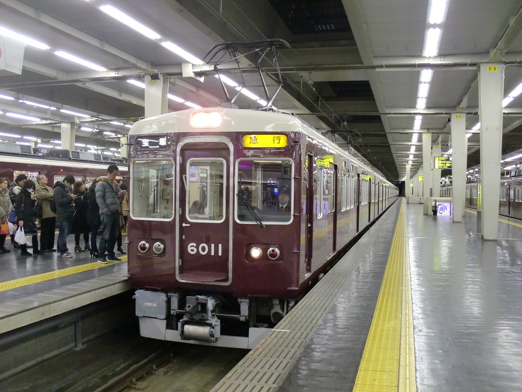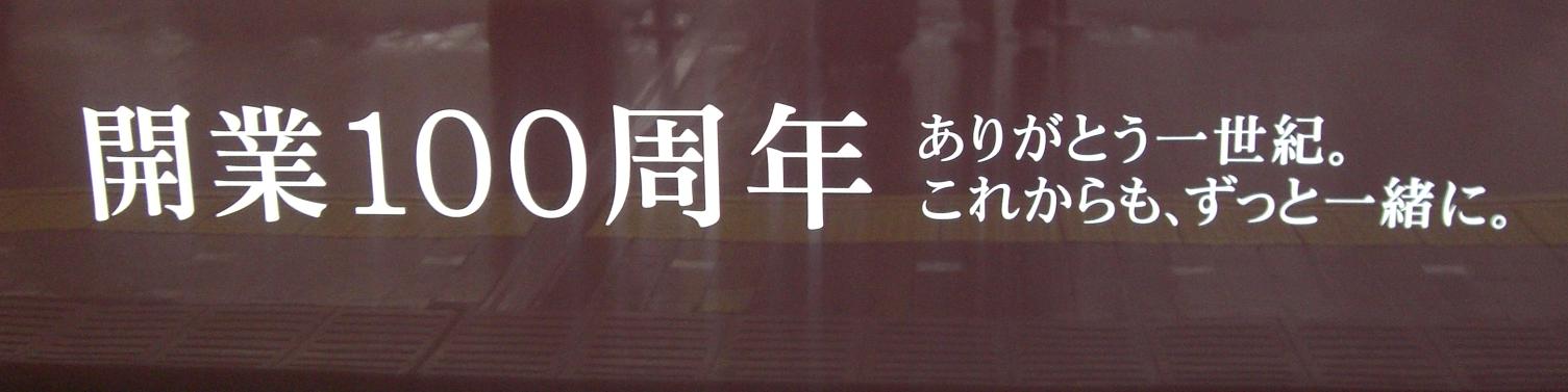 2010年、阪急は開業100周年。それを記念したラッピングが6000系の6001Fに施されて1年間運行されていました。とても上品で味のあるラッピングは何とも阪急らしいなという趣。 撮影地:梅田 |