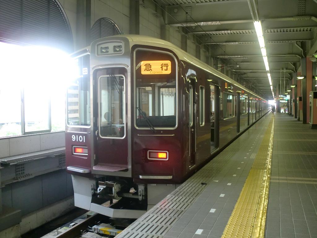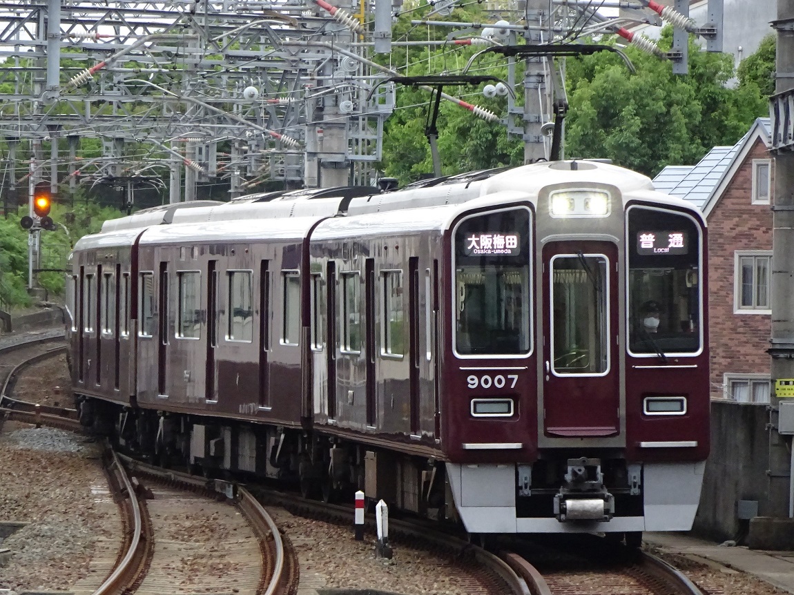2006年に、9300系を基本として登場した車両で、神戸線・宝塚線の双方で運用されています。9300系との見た目上の違いは、側窓が若干狭いこと。車内では、案内表示がLCDモニターに変更されたことと、全席ロングシートとなっていることが違いとなります。 上写真は9007F、川西能勢口にて。 | |
