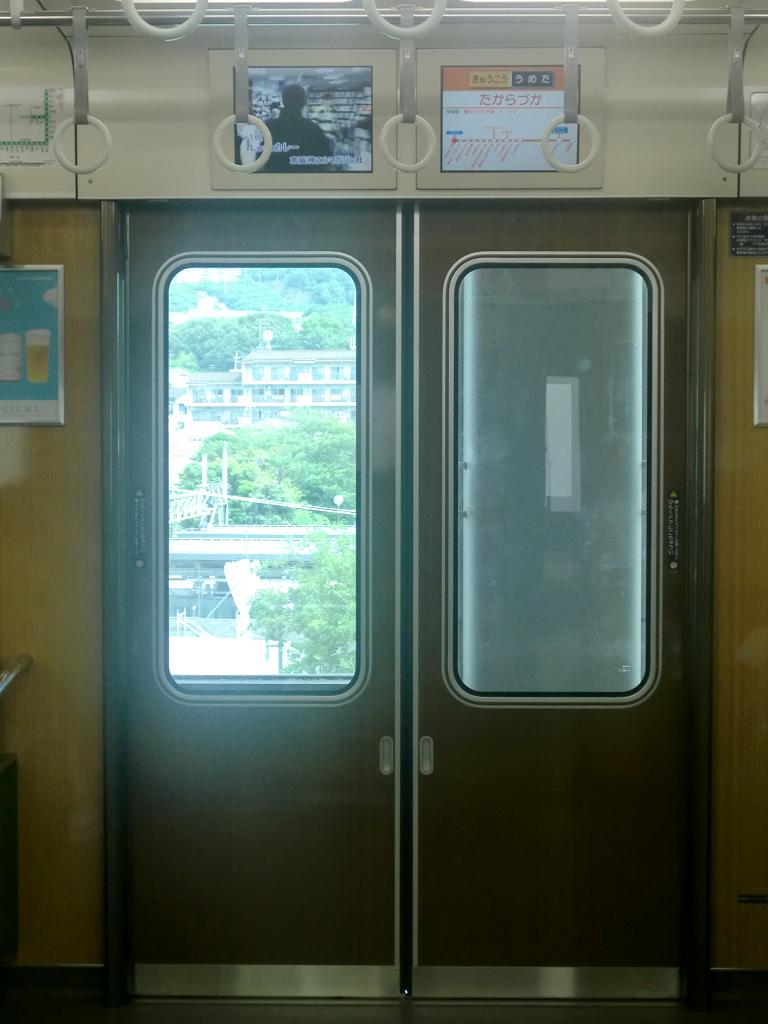 | 9000系ドア開閉(youtube) 非常に窓の大きい扉。今までと比べて少々濃い色の木目化粧板が用いられており、これは9300系や既存車両の更新車に関しても同様です。ドア開閉時に赤いランプが点灯することやドアチャイムがあることも、他のこの扉を持つ車両と同様。 |