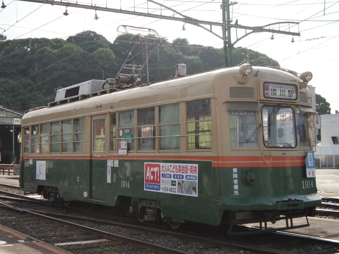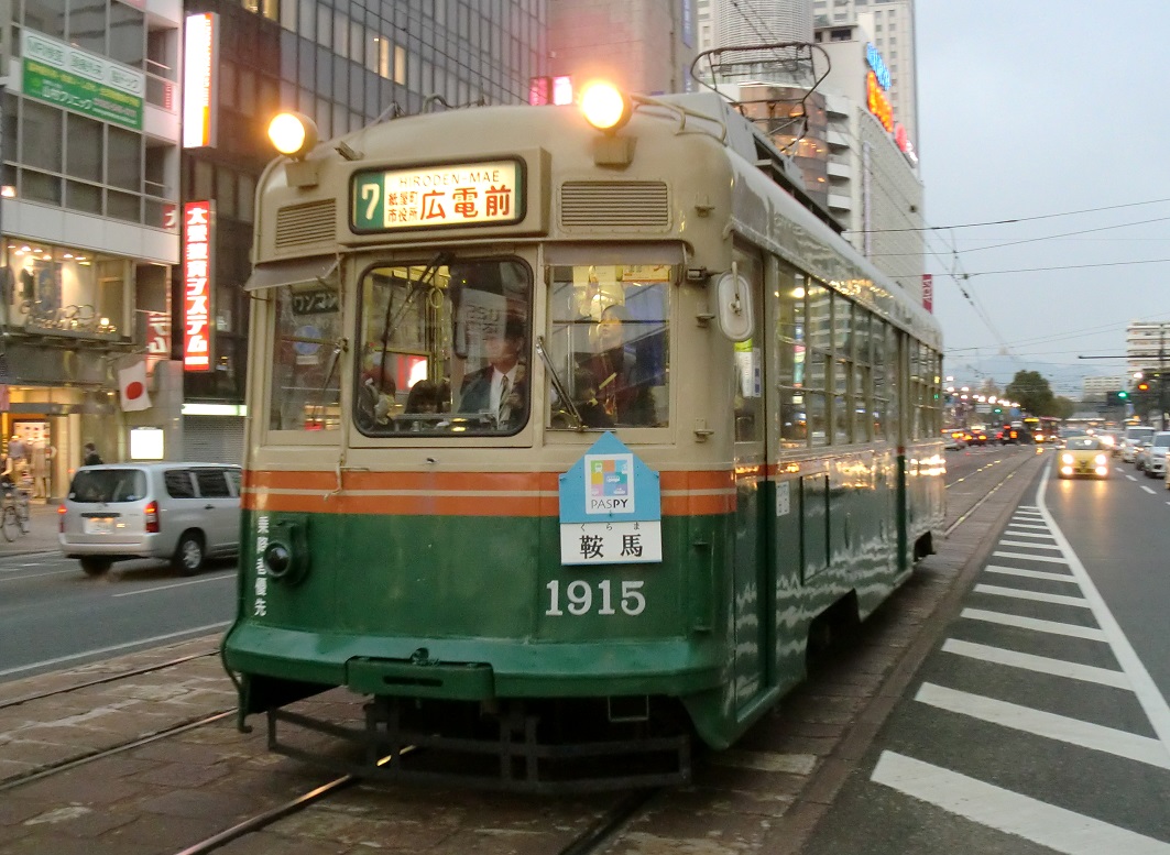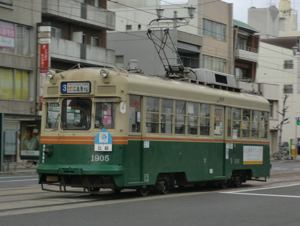 もともとは1957年に登場した京都市電の車両で、京都市電の廃止に伴い、1978年から広島電鉄に移籍しました。少し改造をされた(扉の塗り分け、「ワンマンカー」表示の撤去など)他は、ほとんど原型通り。1両1両に京都にちなんだ愛称が付けられ、広島電鉄が譲受した車両の中では最も多くの車両が在籍する事になりました。