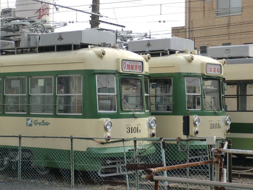 吊り掛け式である事から他の車両より稼働率は低いようで、主にラッシュ時やイベント時に用いられているようです。昼間は大体荒手車庫に留置されています。