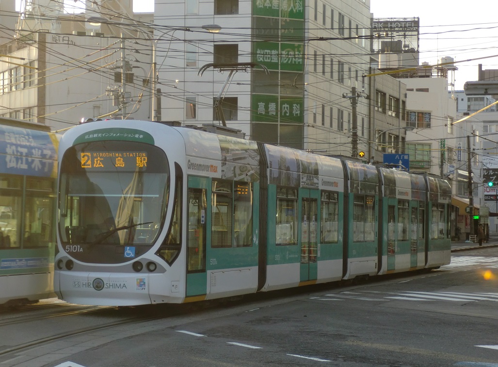 5000形共々、宮島線運用を主体に用いられていますが、5100形は市内線運用にも多く充当されている印象。広電のどこでも見る事が出来る存在と言えそうです。