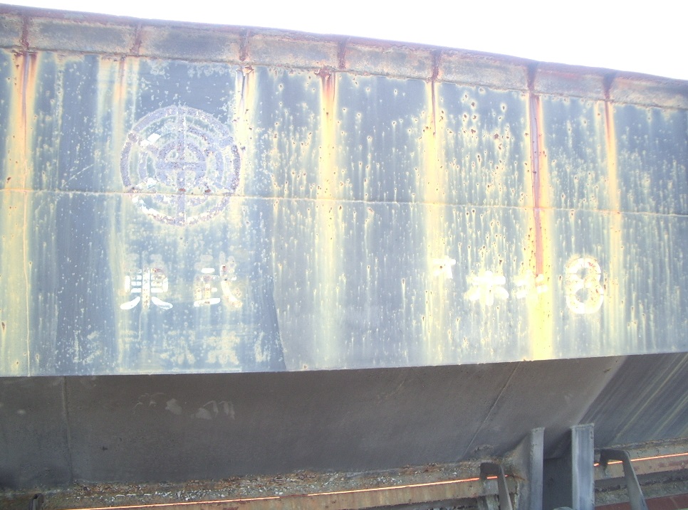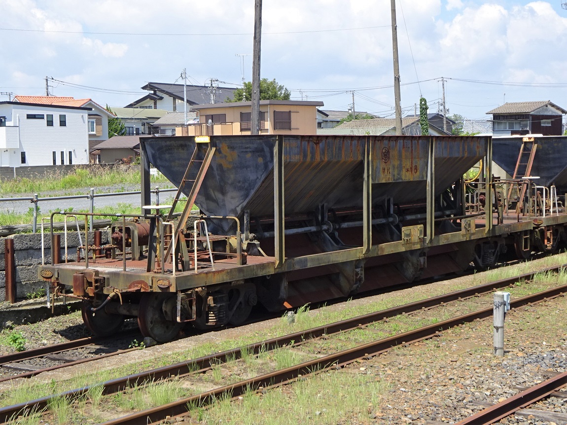 ホッパー車として使用されていたのですが、牽引役のケキ100形が引退してしまったので現在も使用しているのかどうかはわかりません。この車両、なんと東武鉄道の出身。所々「館林」「杉戸」の文字が残っているほか「東武鉄道」の銘板もしっかり残っています。杉戸という文字が残っているのも、今となっては貴重なのではないでしょうか。