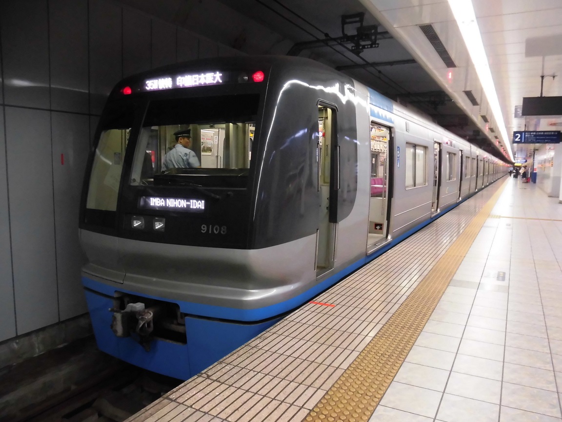 ・9100形9108編成 蔵前発着(youtube) 北総鉄道(正確には千葉ニュータウン鉄道)の9100形は、都営浅草線を走る車両の中でも飛びぬけて個性的なデザインを持つ車両で、今でもそのデザインは遜色ないと言えるのではないでしょうか。子供の反応が良さそうです。 |