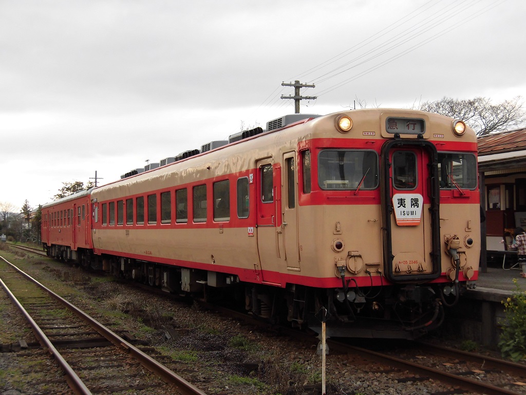 いすみ鉄道がキハ52に次ぐいすみ線の目玉として導入した車両で、元々はJR西日本で2011年のダイヤ改正まで無印のキハ58として最後まで運用についていた車両となります。塗装を国鉄色に改めた上で、キハ52と連結して急行の運用に用いています。当然ながら、日本国内で現役最後の原型キハ58となります。鉄道ファンや観光客に大人気。