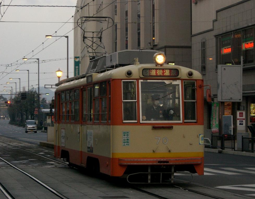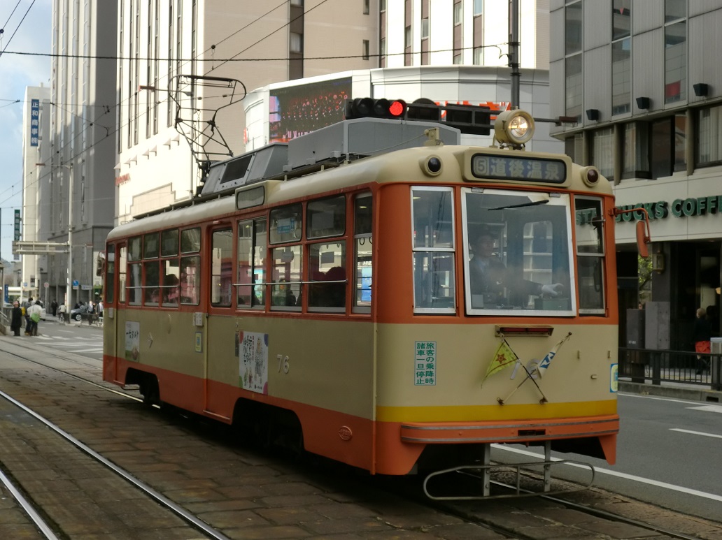 | ・50形走行音 【前期】【城南線】道後公園→南町@(2分1秒:661KB)…61号にて 【前期】【城南線】道後公園→南町A(29秒:164KB)…61号にて 【前期】【城南線】南町→上一万(1分20秒:441KB)…61号にて 【前期】【城南線】大街道→県庁前(18秒:101KB)…51号にて 【前期】【城南線】県庁前→市役所前(1分7秒:366KB)…51号にて 【中期】【城南線】大街道→県庁前(2分7秒:690KB)…68号にて 【中期】【城南線】県庁前→市役所前(1分22秒:449KB)…68号にて 【後期】【城南線】道後公園→南町@(36秒:195KB)…73号にて 【後期】【城南線】道後公園→南町A(1分1秒:330KB)…73号にて 【後期】【城南線】道後公園→南町B(29秒:156KB)…73号にて 【後期】【城南線】南町→上一万(1分48秒:588KB)…73号にて 【後期】【城南線】大街道→県庁前@(53秒:291KB)…78号にて 【後期】【城南線】大街道→県庁前A→市役所前(1分38秒:534KB)…78号にて 一応前・中・後期で分けたのですが基本的に音は同じで、全て吊り掛け式。個人的には、数ある路面電車の中でもかなり派手な音を出す部類に感じました。こんな古めかしい音でありながら、警笛は近年の路面電車で増えているミュージックホーンに変更されています。 |