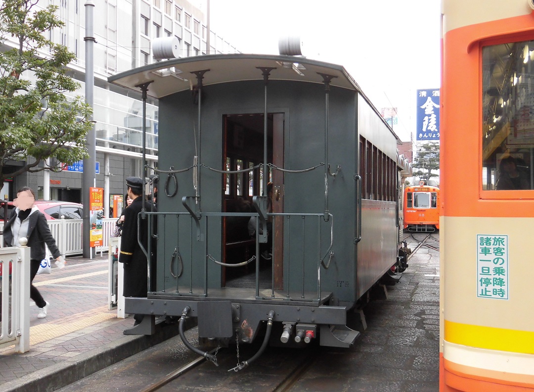 元々は、1911年に発生した車庫の火災による車両の不足を補填するために登場した大型の客車。いつごろまでに引退したのかは不明ですが、1960年までに全ての客車が引退しているので、それまでに引退したものと思われます。現在、古町車庫の片隅にフードを被った良くわからない車両が1両留置されていますが、実はこれがハ31形の実物。いつかきれいに整備されて保存されれば良いのですが、どうなる事やら。