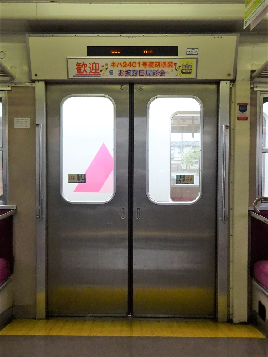 ・車内チャイム 旧来のディーゼルカーにありがちな、八幡電機産業のオルゴールの「アルプスの牧場」が搭載されているようです。これは撮影会の送迎列車で流れたもので、普段から使用しているのかは分かりません。 |