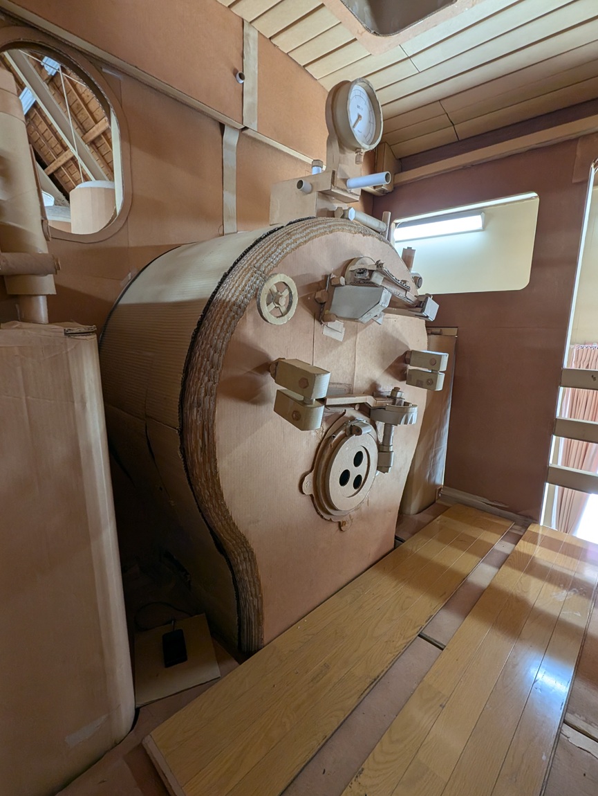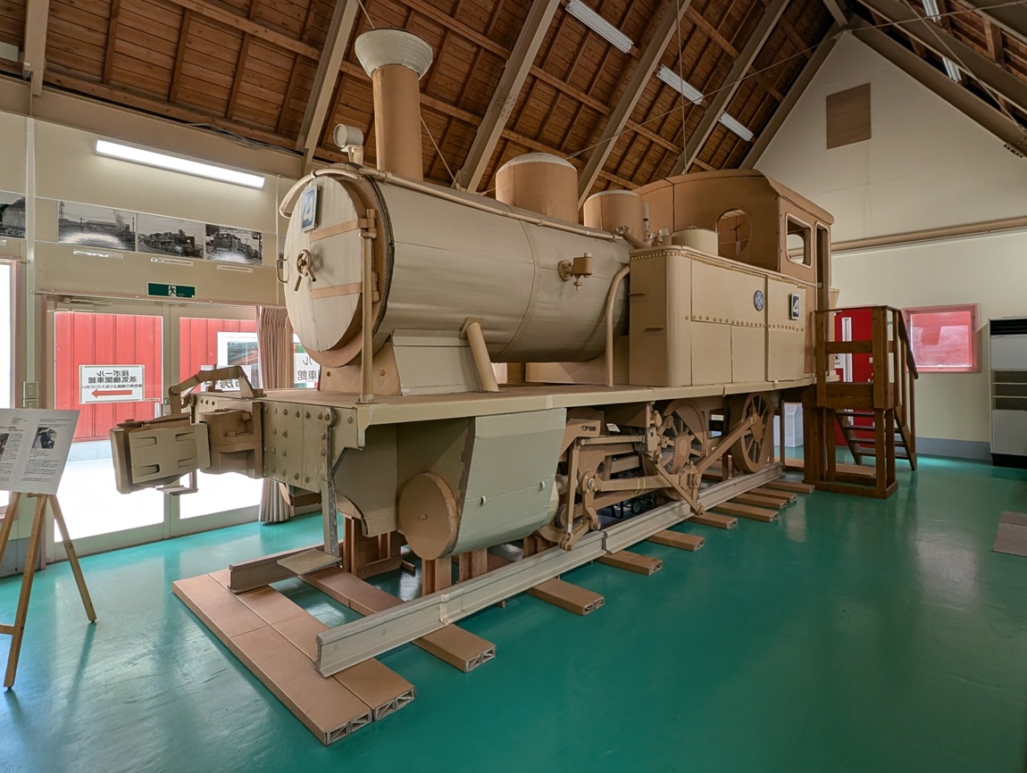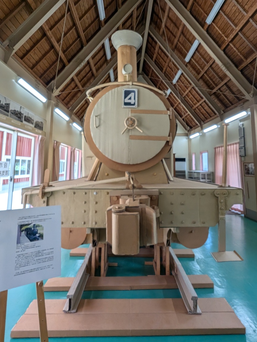 ザ・ヒロサワシティに保存されている段ボール製の4号機関車。これは、「アートを通じて竜ケ崎線や龍ケ崎市のPR・活性化を図る事を目的に、市民団体が企画し、平成28年にボランティアの協力により制作された物との事。展示期間が終了した後これをどうしようか、と思っていた所、何でも収集していた私設博物館でもあったヒロサワシティ側から声がかかり安住の地を得た、という事のようです。これもある種の「保存車」ですね。