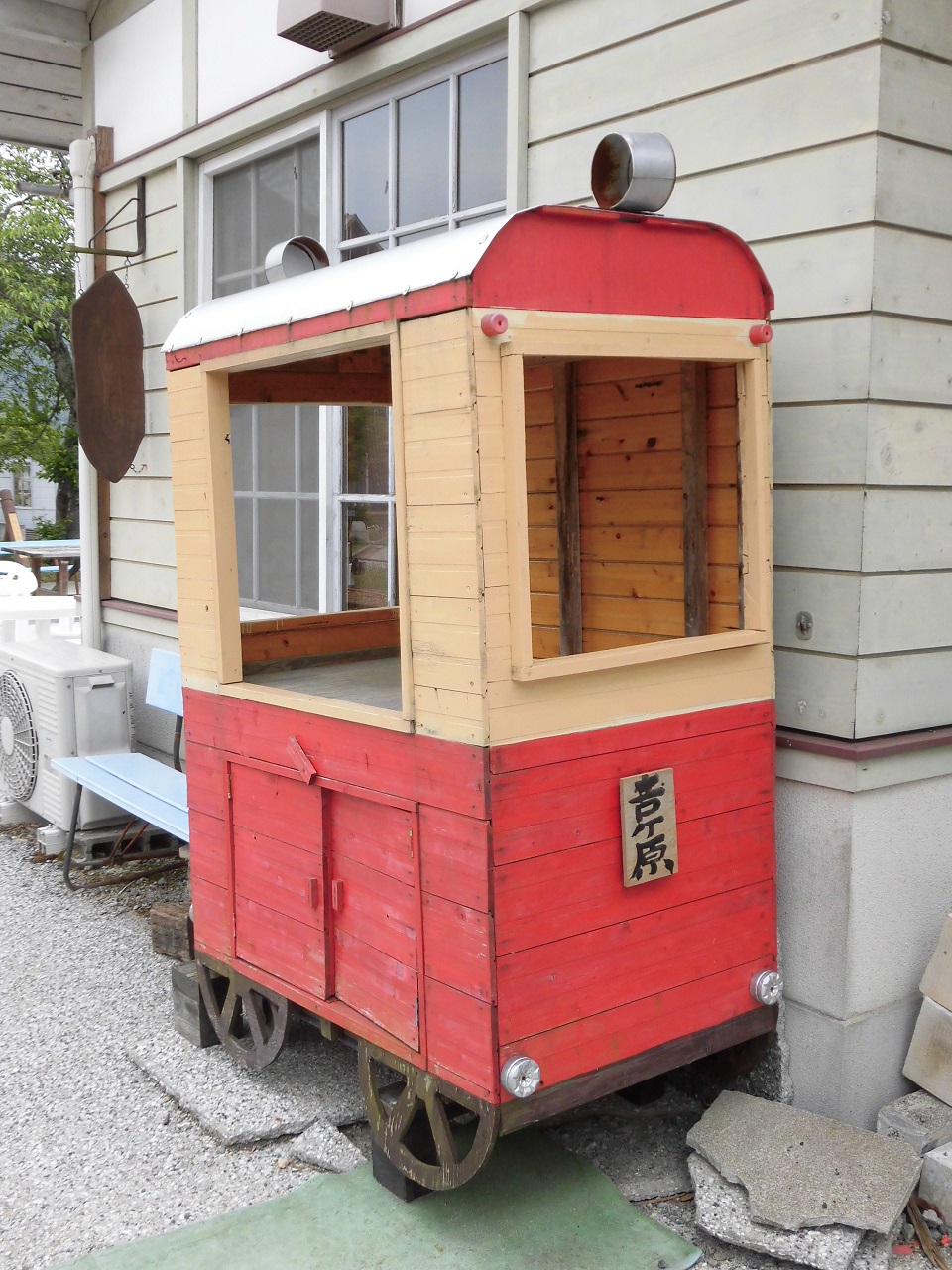 ミニ電車 展示走行時、グッズ売り場にでもなるんですかね。 (左写真は柵原ふれあい鉱山公園にて) |