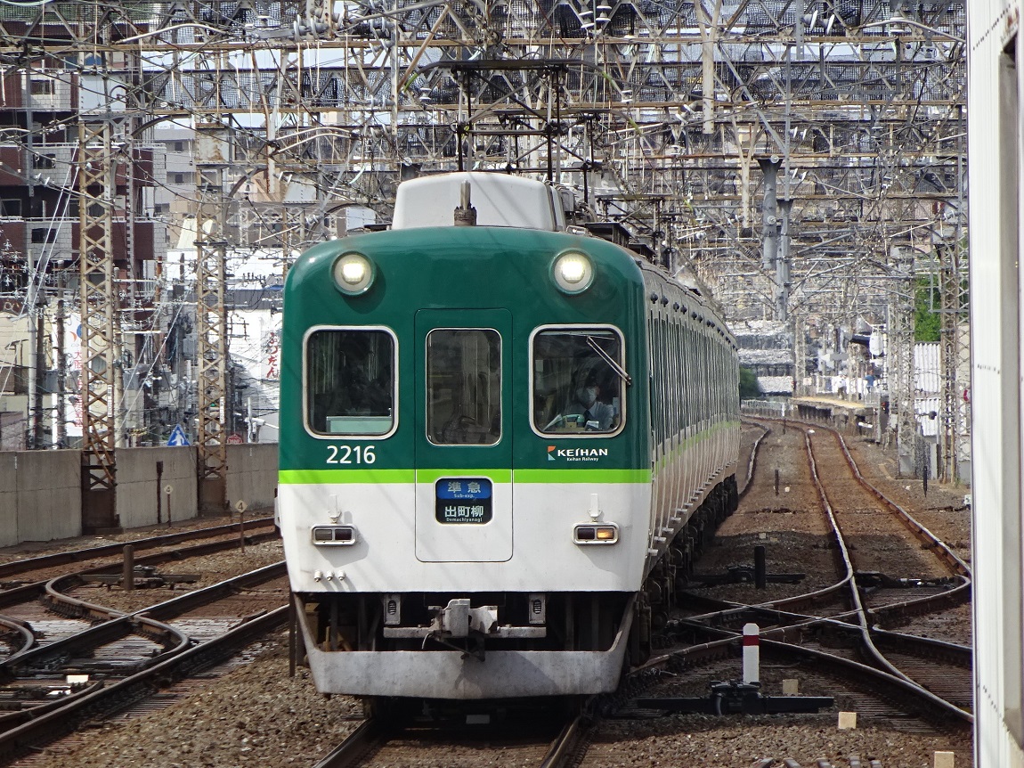 | ・2200系(2217F)三条発車(youtube) 京阪の現役の通勤型の中では最古参となる2200系。しかし、この車両にも新塗装化が施されている所を見ると当面の間は活躍を見ることが出来そうな予感がします。2217Fはごく普通の抵抗制御となります(16,17の2編成以外は界磁に更新)。 夏なので凄まじく冷房の音が大きいのはご容赦ください。 |