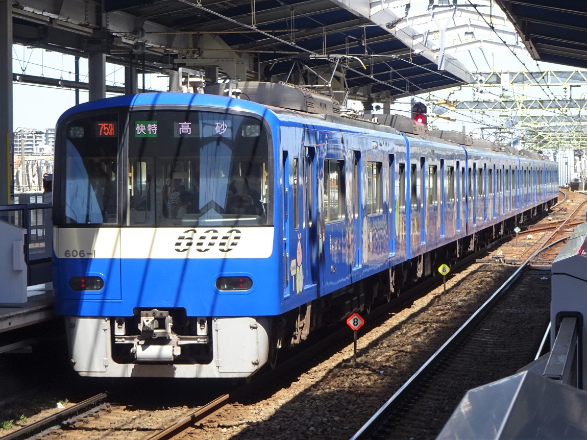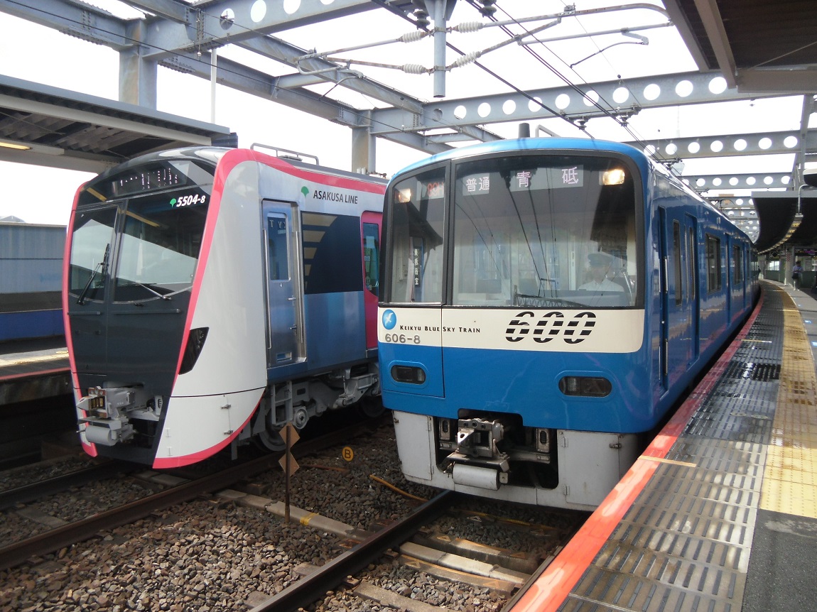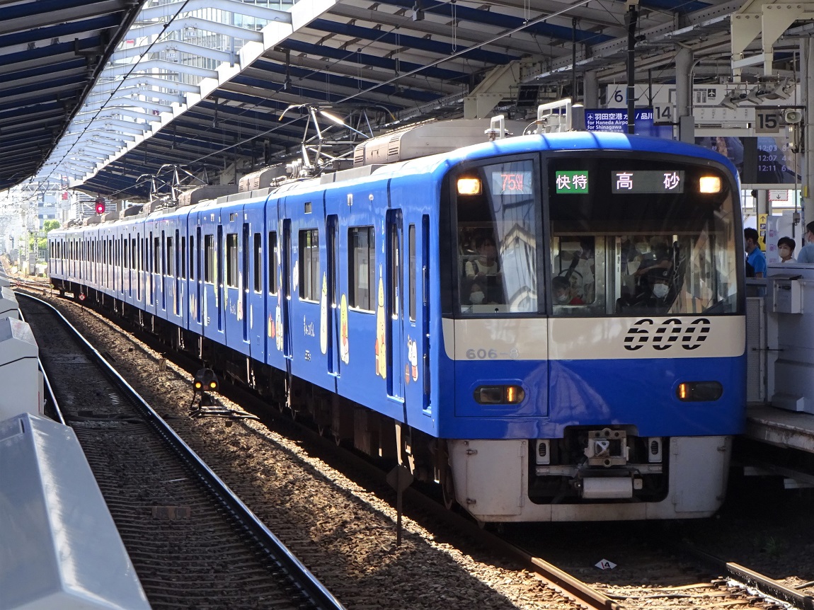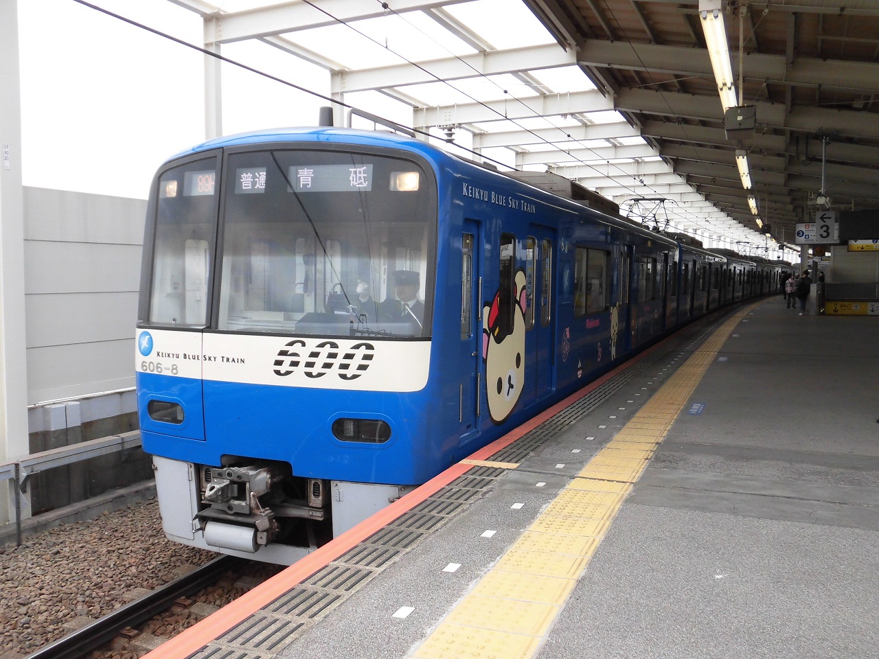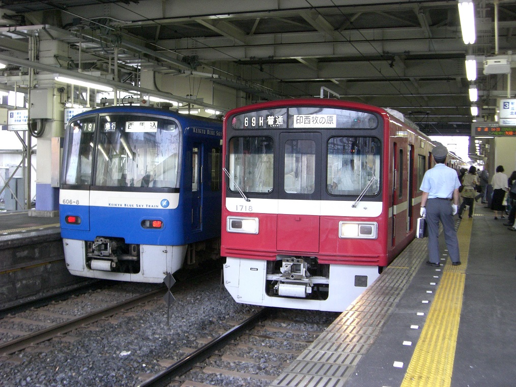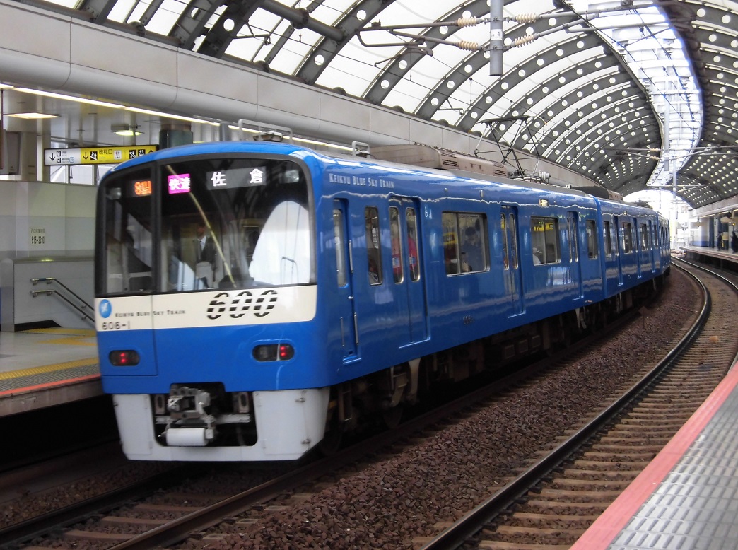 2005年より、606編成が「KEIKYU BLUE SKY TRAIN」として青一色の塗装に変更されて運転されています。特別な運用に用いられているわけでは無く、他の編成と共通運用となっています。後に2100形にも青色の編成が登場し、KEIKYU BLUE SKY TRAINは2本体制となりました。 撮影地:青砥 |