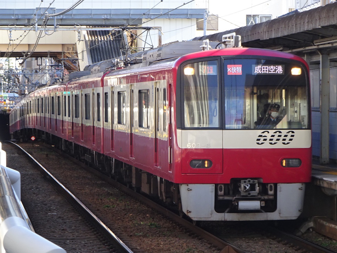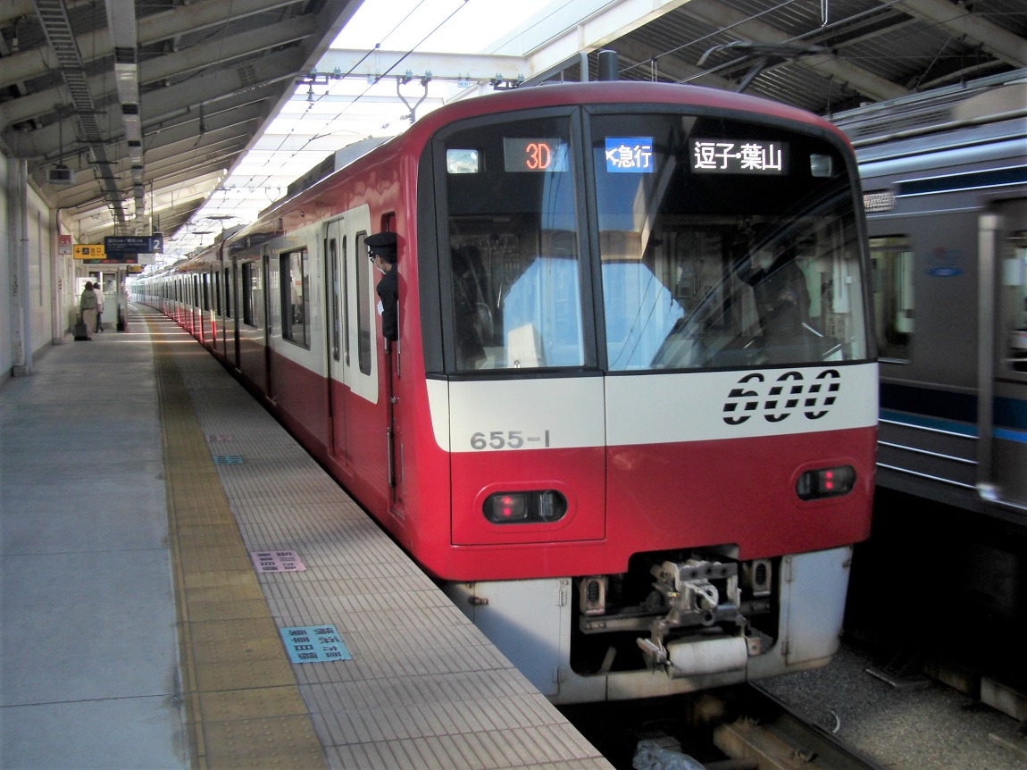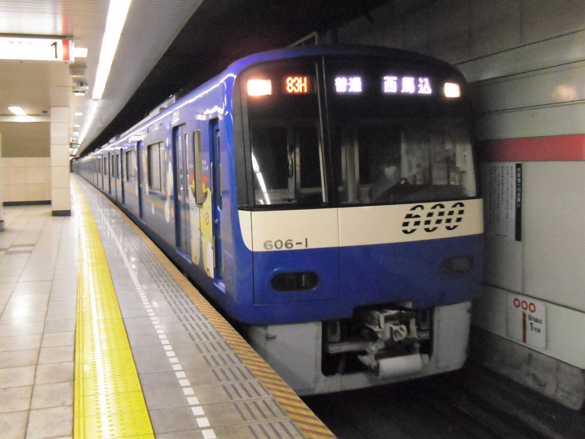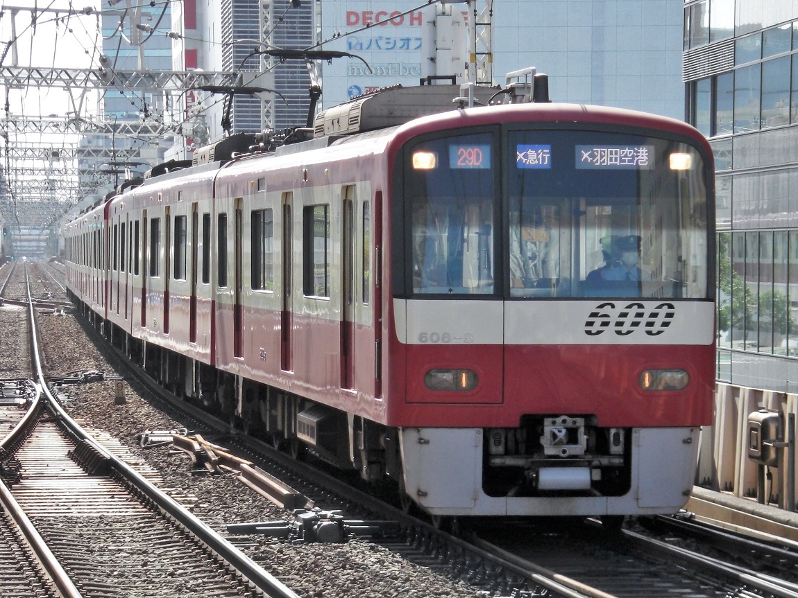 "600形"という車両は過去に2種存在していたので、この車両は3代目。1994年に在来車の置き換え用に登場しました。通勤型車両でありながら車内にはクロスシートが採用され、塗装も2000形と同じ快速特急用のものとされました。当初は都営、京成、北総各線への直通運用が主となっていましたが、現在は成田スカイアクセス線での運用(8両編成)、横浜方面でのエアポート急行の運用(4両編成)が主となりました。 ボックスシートはラッシュ時に不便であったことから、2005年から更新が施され、車端部を除いてロングシートに改造されています。 上写真は604編成、品川にて。 |