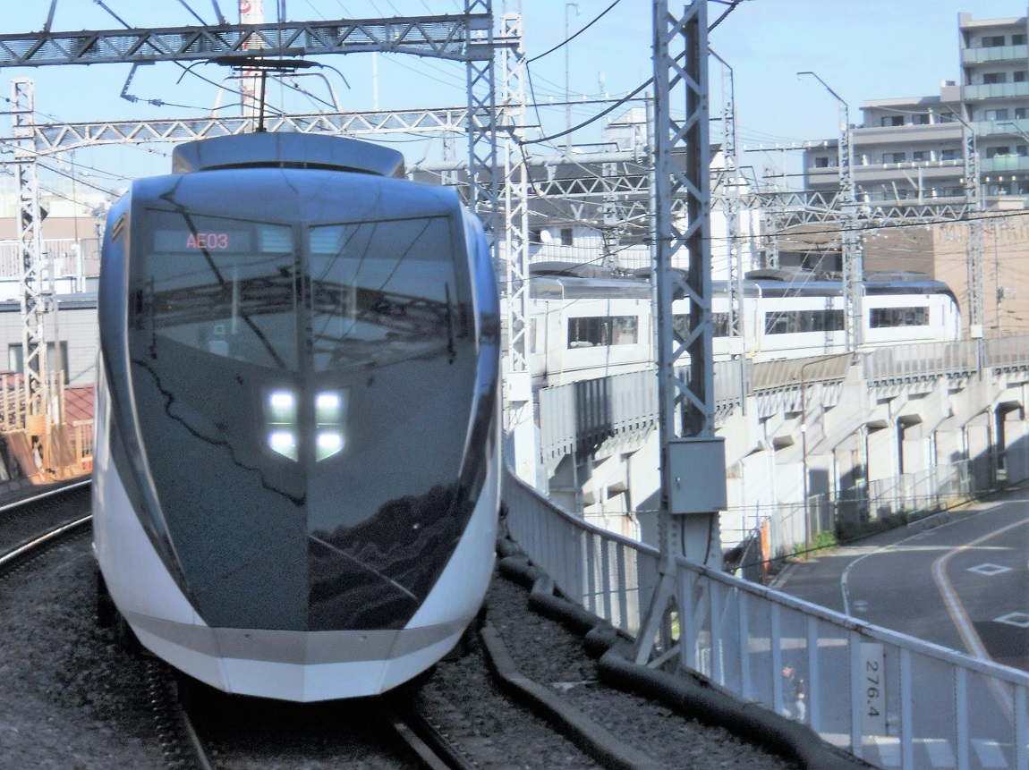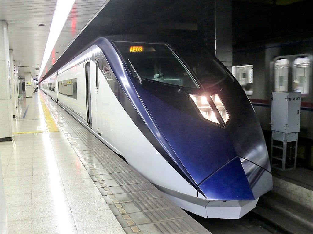 AE形 空港第2ビル発車(youtube) 止むを得ないながら構造が分かりにくい空港第2ビル駅。本線の一番後ろの乗車口辺りが丁度スカイライナーの顔が来る辺りになります。動き出すのは0:20辺りからです。編成番号は見忘れてしまいましたが恐らくAE3かAE8のどちらかかと思います。 AE形も京成らしく東洋IGBTとなっていますが、既存の3000系統とは音が異なります。京阪3000系辺りが近い音だと言えるでしょうか。 | |