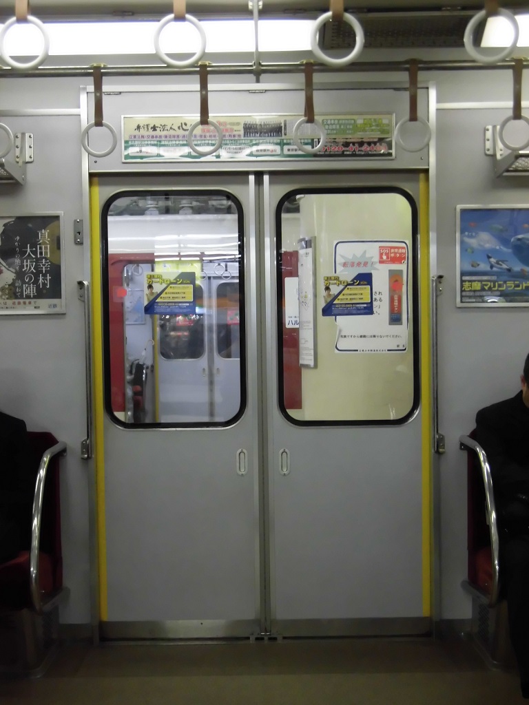 1201系 ドア開閉 (youtube) 形式区分がとにかく細かいので同じ扉を持っている車両も新旧問わずたくさんいる(ドアエンジンやドアチャイム(ブザー)などの違いはあるのでしょうけれど)はずですが、撮影を行ったのは1201系1201編成でした。 近鉄ではよく見るタイプの扉の1つで、複層ガラスに変更されています。 |