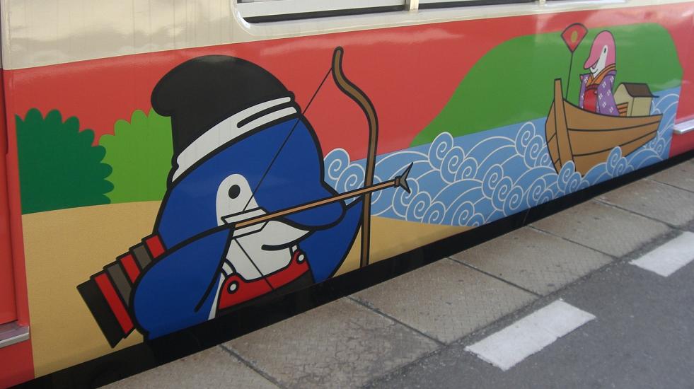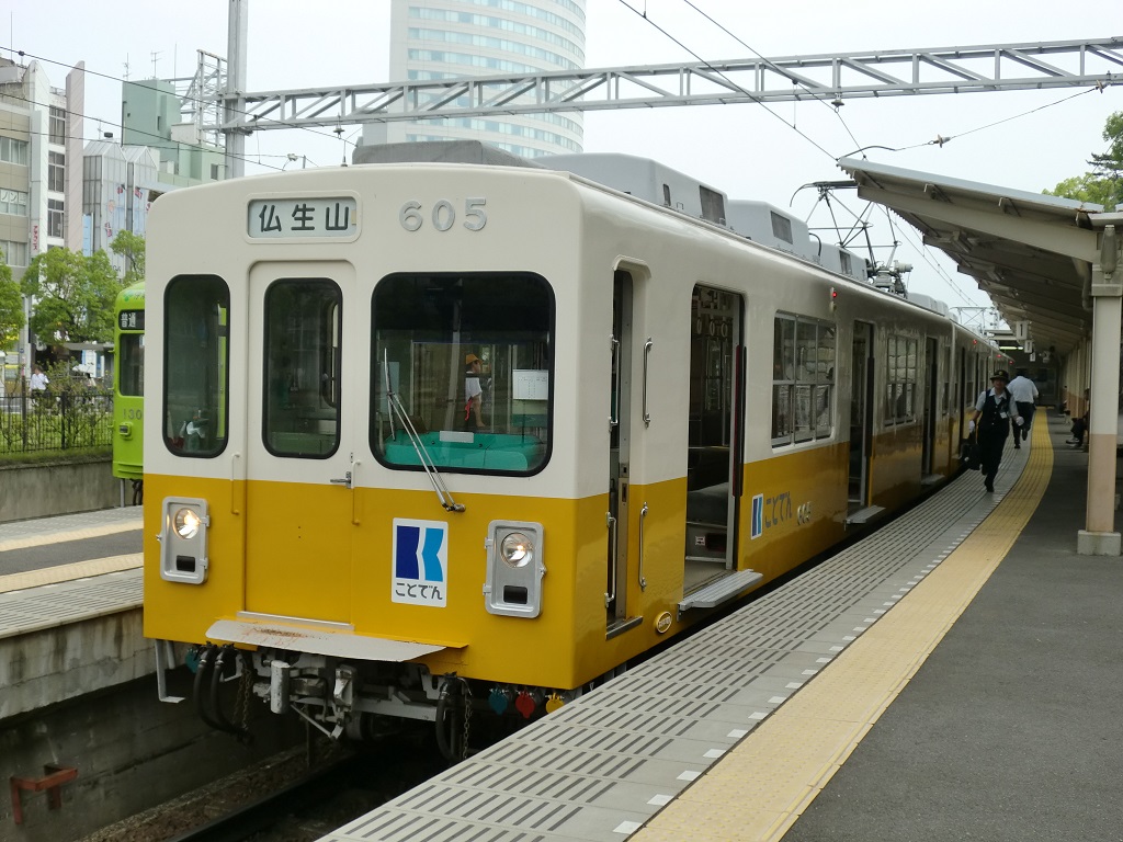 | ・600形605編成瓦町発車(youtube) もと名古屋市営地下鉄の600形。もともと長尾線と志度線で運行されていましたが、このうち長尾線の車両の一部が琴平線に移籍し、黄色に塗り替えられました。このため、600形は現在琴電で運行されている車両で唯一、赤緑黄の3色全てが見られる形式となっています。他の琴平線の車両と比べて幅も長さも小さいので、混雑時は他の車両より大変そうな気もしますが、はてさて。 | |
