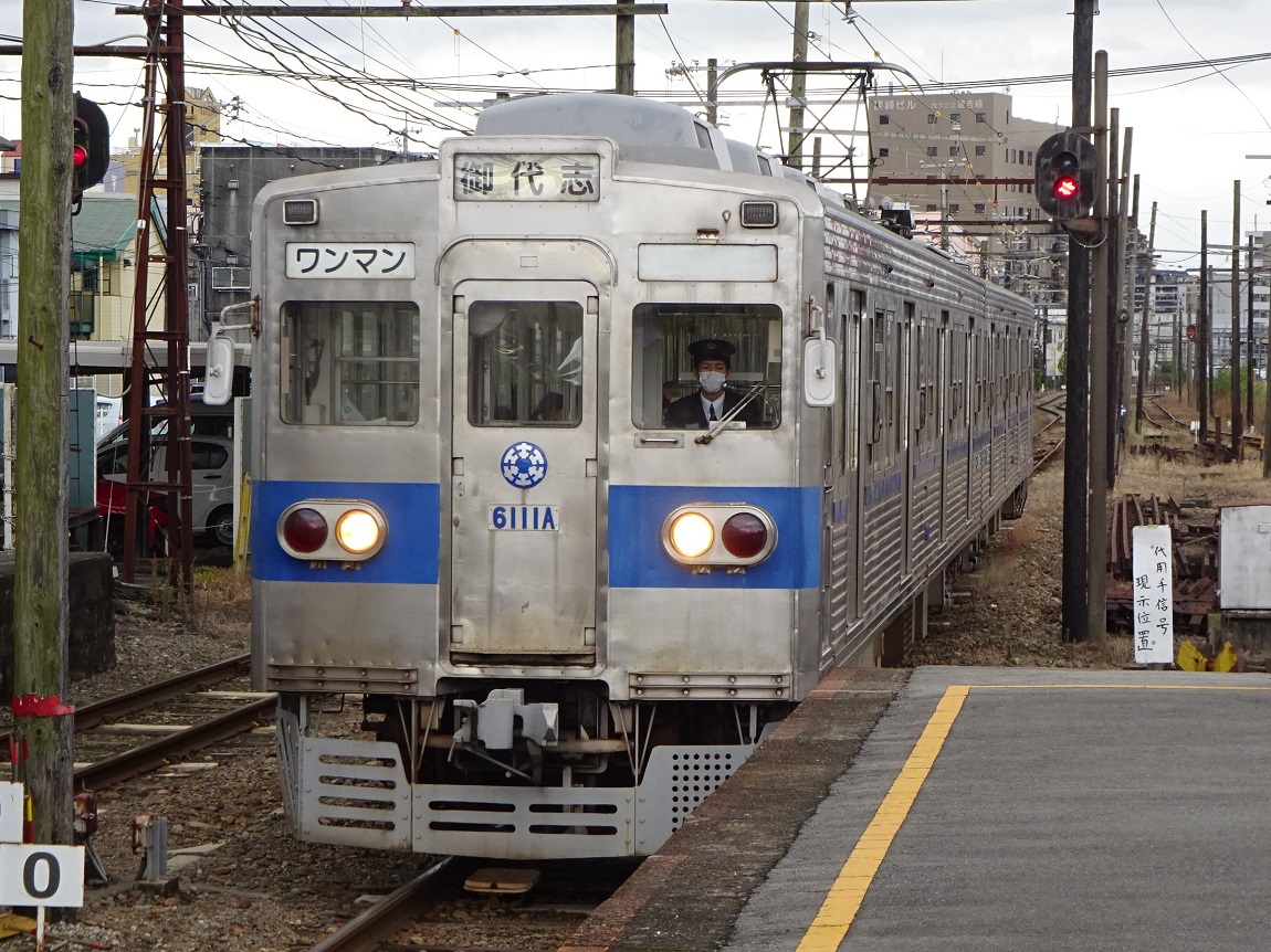 | ・6000系走行音 【菊池線】三ツ石〜黒石(2分00秒:652KB)…6111A-6118Aにて 基本的に三田線時代と変わっていないはずですが、当時の音をもう殆ど覚えていないので何とも言えないのが…。ワンマン運転のため、自動放送が設置されており、地方私鉄では珍しい男声放送となっています。ドアチャイム等は特に無いみたいです。CPが作動するとどうしようもなく耳障りなのも、古い車両故でしょう。尚、一部の駅を除き扉は進行方向前の車両の一番前の扉しか開きませんので、扉の作動音を含めて録りたい方は先頭で録るのが良いでしょう。 |