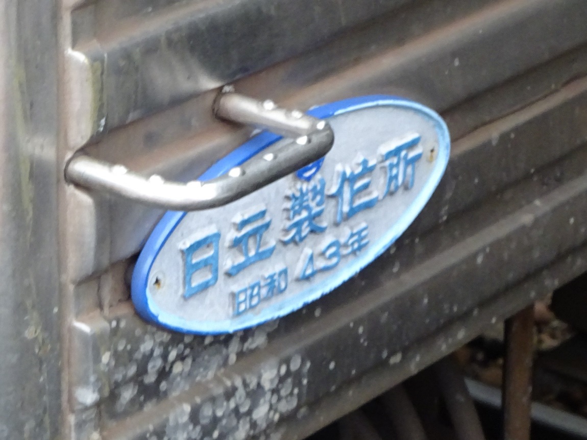 | 出入口表示1 | 台車 | パンタグラフ | 出入口表示2 | 出入口表示3 | 製造表示 日立 昭和43年 |